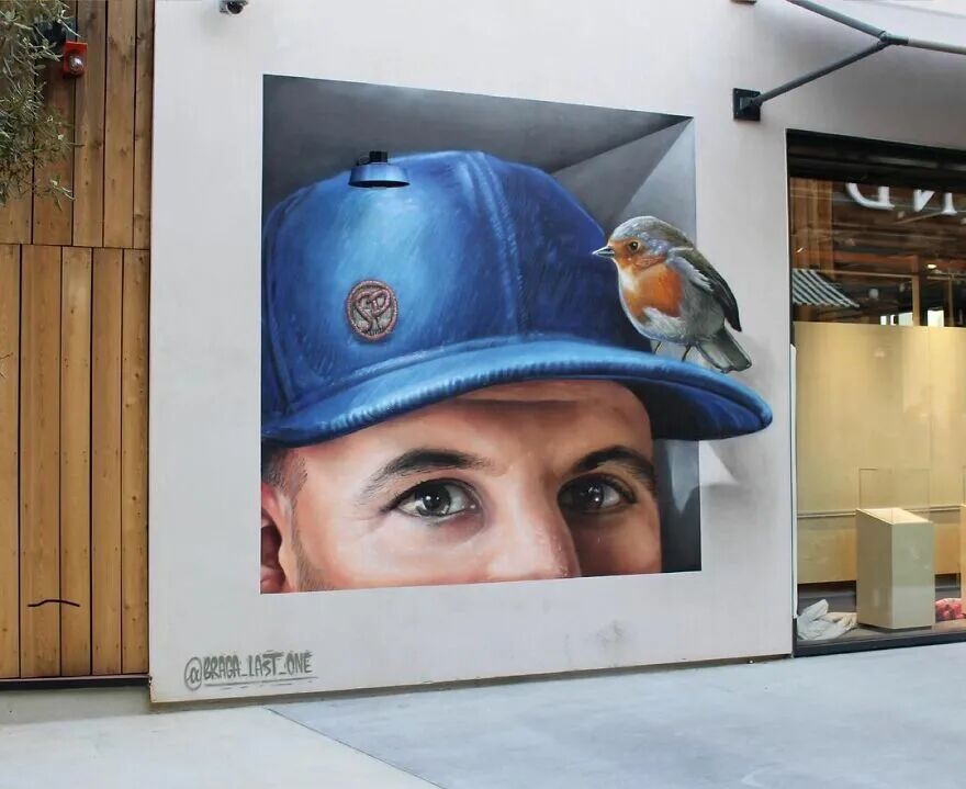 汤姆·布拉加多善于利用人眼成像的漏洞,和创作涂鸦墙壁周围的环境,将作品融入到环境中,从而诞生出亦真亦假的涂鸦作品。