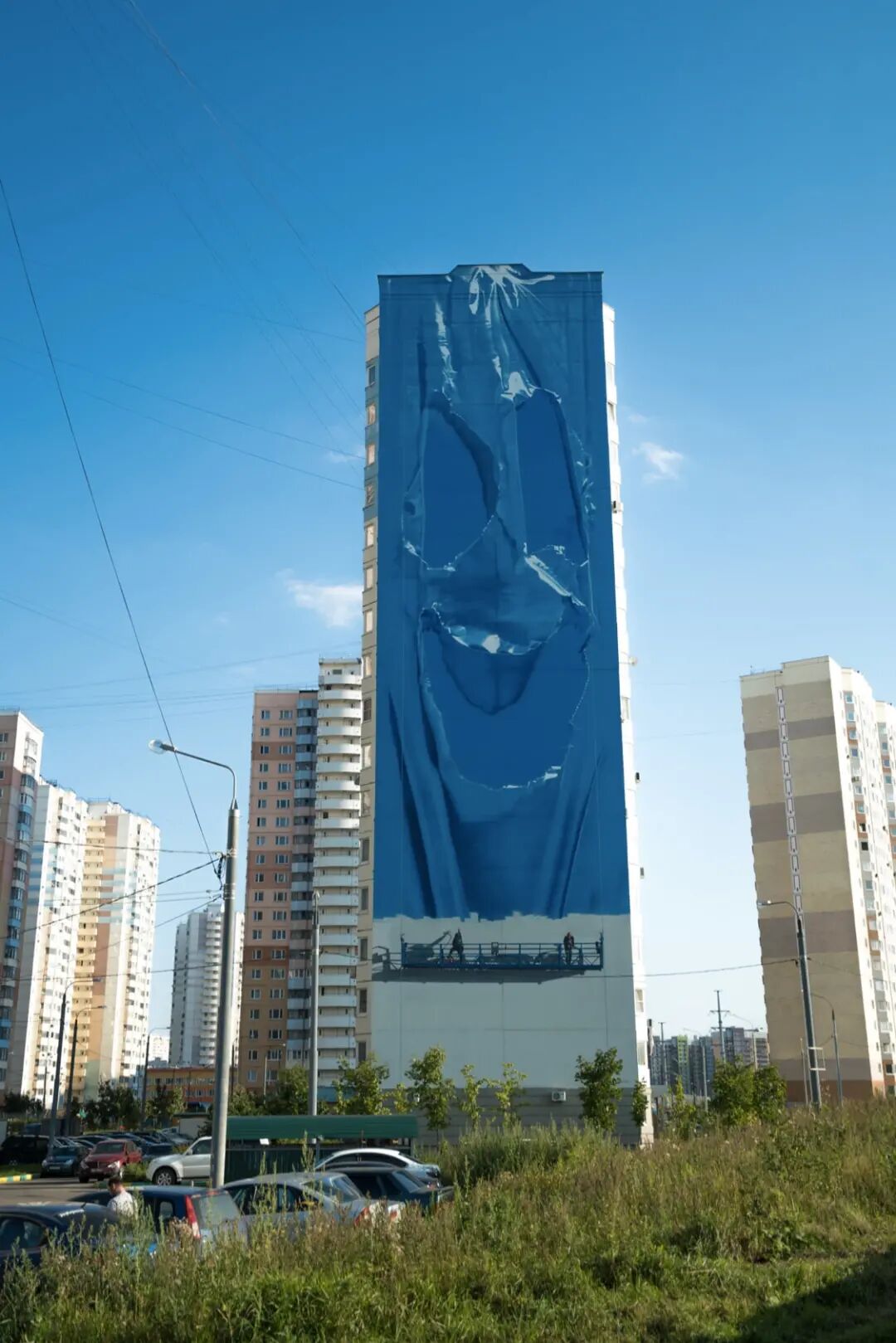 这似乎让人有点难以置信,但是丹妮拉·什梅列夫真的做到了,在一座混凝土公寓楼的白墙上,这位艺术家创作了一座3D效果强烈的建筑。不仅有阳台、窗户,甚至还有挂在窗子外面的空调外机。巨大的错视觉,让这面墙呈现出了楼房的三维结构,让人一眼看上去,就是一栋真实的楼房。