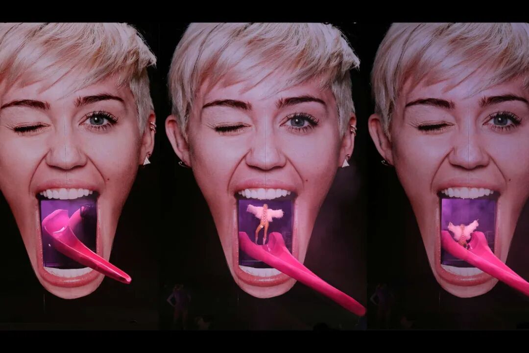 Miley Cyrus 的 BANGERZ 秀,Es Devlin 设计她从舌头上滑下来。