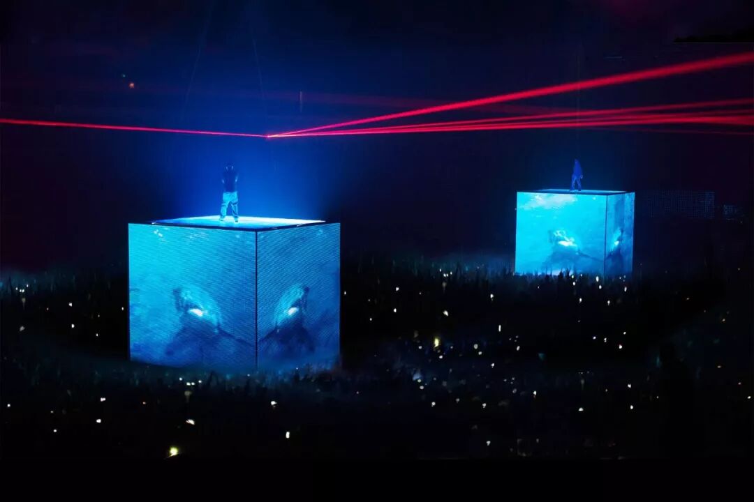 Devlin 还曾为 U2 乐队操刀过三场演唱会,舞台被平放在演出场地的正中央,所有观众都能近距离的欣赏。