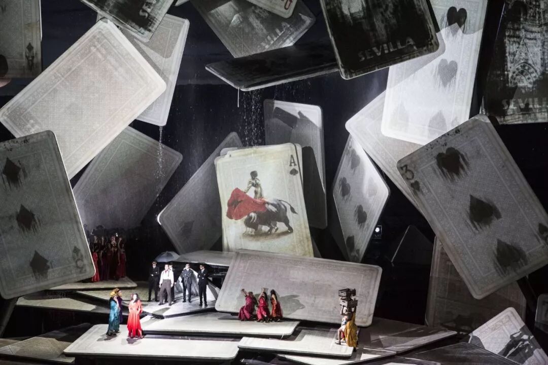 Devlin为歌剧「卡门」创造了一个戏剧化的舞台,灵感来源于歌剧中的一个场景:卡门看完自己的运势,将纸牌扔向空中......