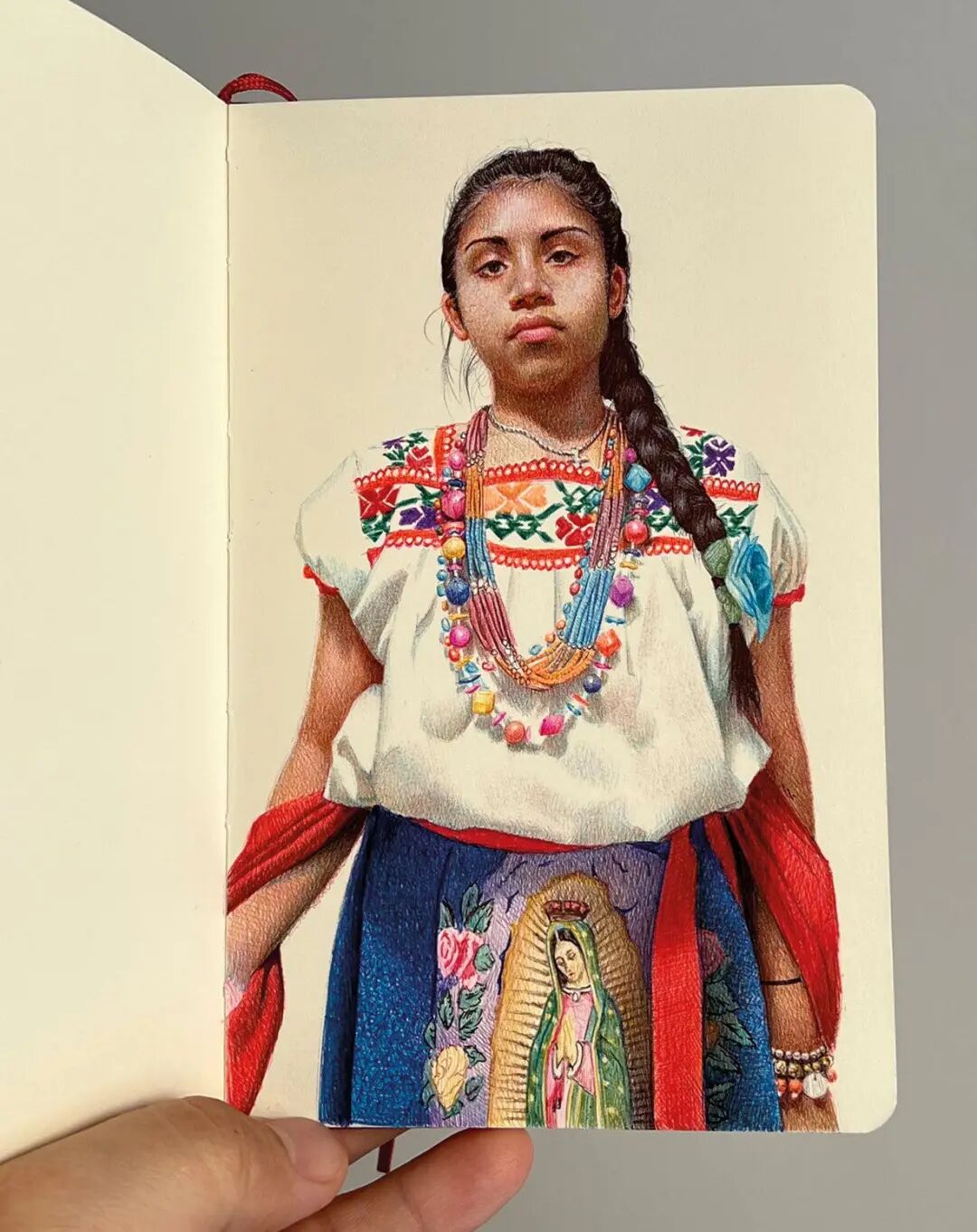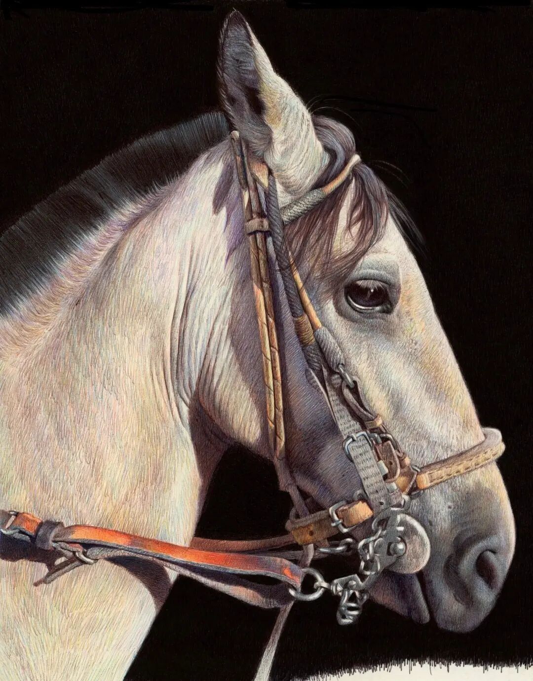 说回尼古拉斯·桑切斯的画作,圆珠笔画与油画结合之后,确实让作品更加生动了,马的眼神中仿佛诉说着忧伤,女孩的神情中透露着倔强,戴草帽的男子的背影则透着一种孤独......看他的画作,似乎能读出画作背后的故事,接下来,我们就一起欣赏这位艺术家的精彩作品吧。
