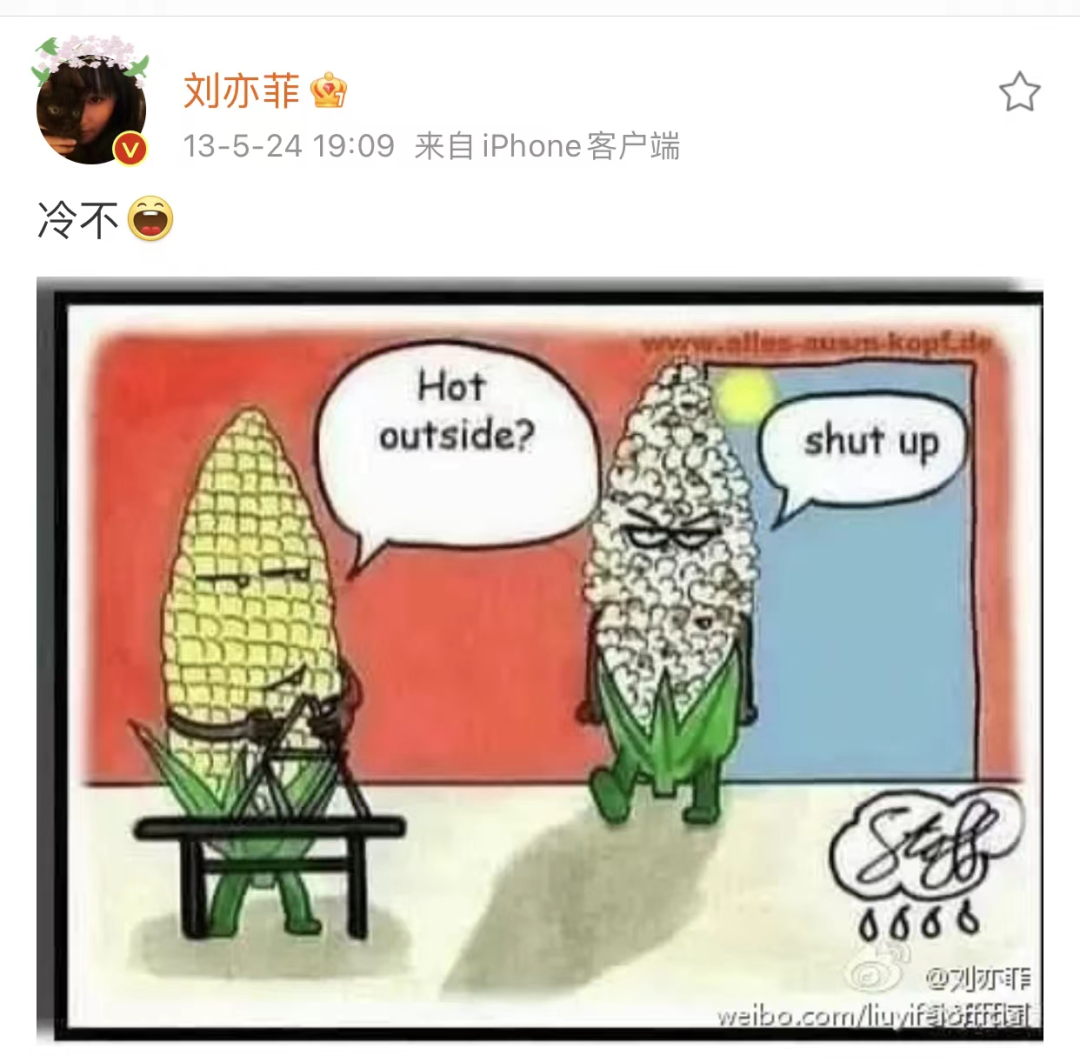 会分享不好笑的冷笑话,发微博问大家“冷不冷”,也会和粉丝分享自己上法语课的日常。