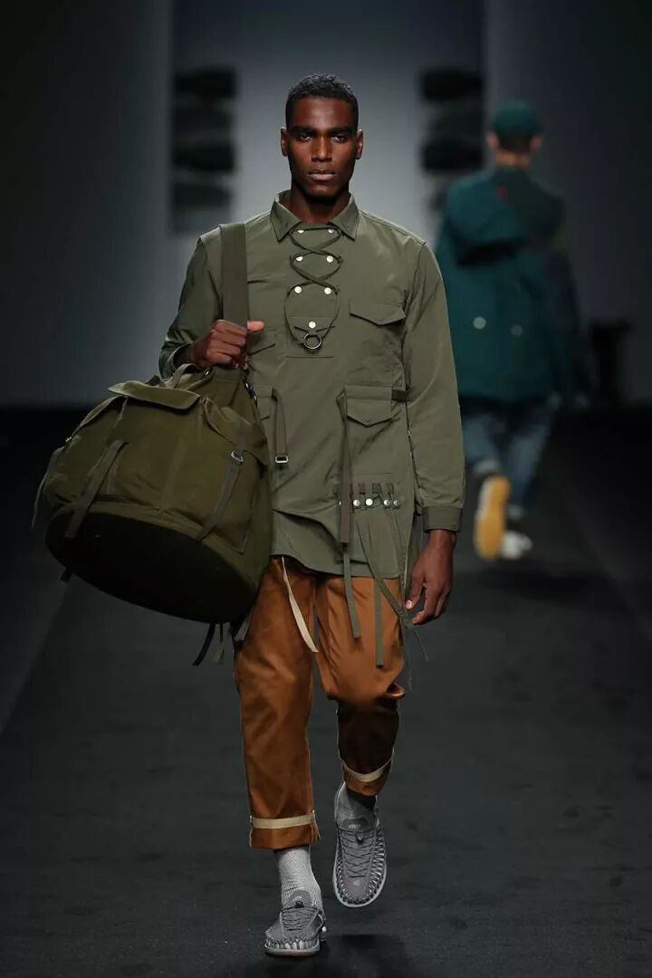2018春夏系列主题为《SNOWPIERCER》,整个系列希望借由设计语言来表达对于全球环境气候异常的深刻思考,并通过设计师所构想的不同阶级信仰和差异化形态的产品与造型,共同打造一个浪漫主义工业风格背景下的未来世界。