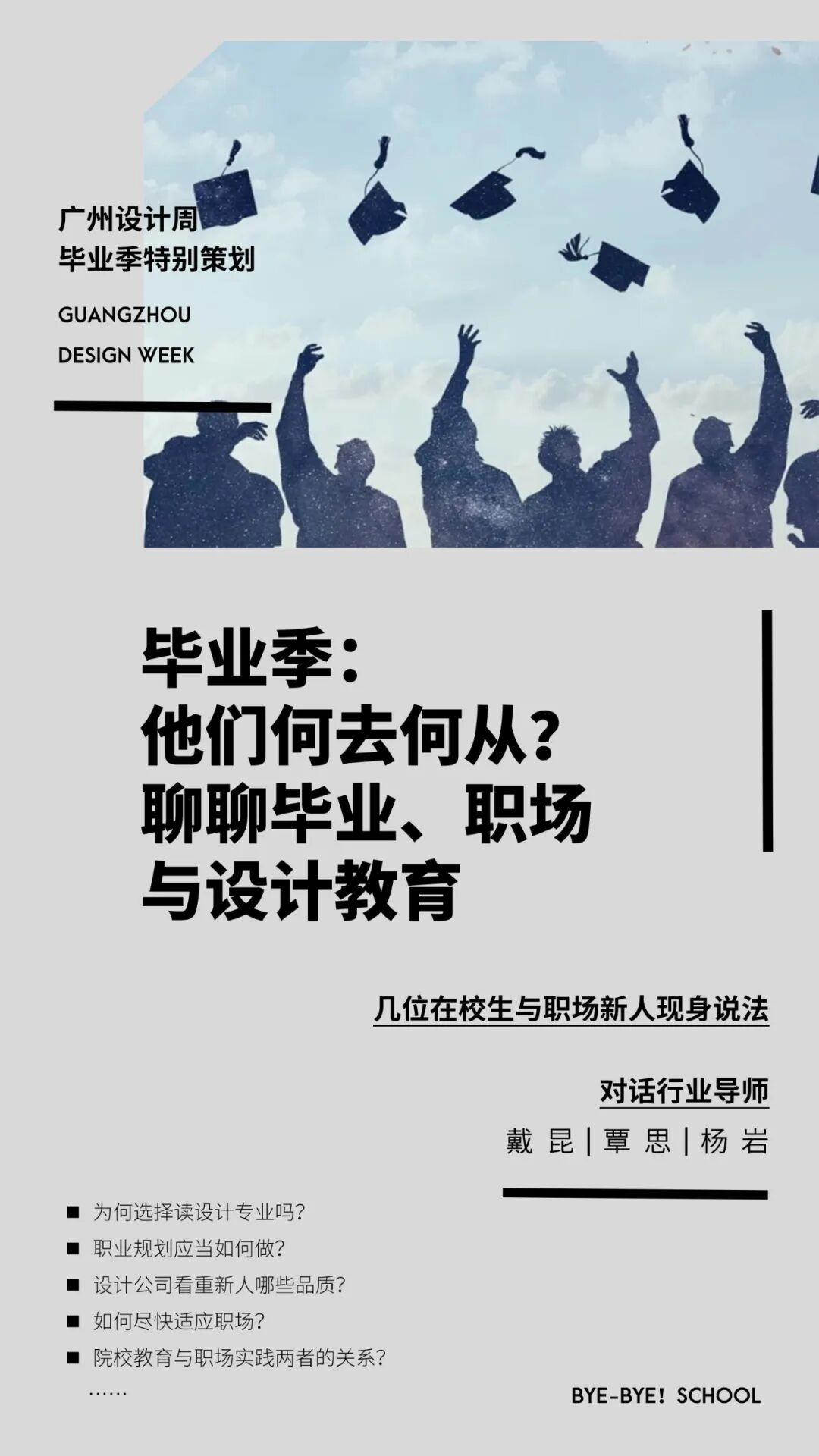 广州设计周本次将镜头聚焦毕业季,我们邀请了多位设计专业的在校生/准毕业生、工作1-2年的职场新人,以及在设计领域耕耘多年的行业前辈,凝练2022年的毕业问题,在精彩的问与答之间,一起聊聊未来、谈谈现实。