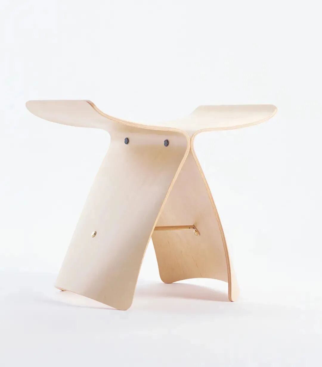 高频技术成型的合板,由两颗螺钉和一根撑条组合而成。单纯明快的构造当中,活用具有日本特色的曲线,诞生出柔和的造型美。正是出于这种造型美,直至今日也被人们喜爱,持续销售至今。