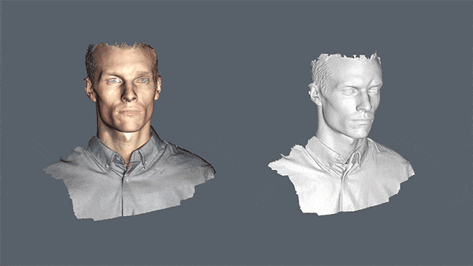 Revopoint POP三维扫描仪采用双目结构光设计,保证了获取的三维点云数据具有较高的精度,最高单帧精度可达0.3mm。当用它扫描人脸时,可以设置为“人体”模式,被扫描的人不会感受到任何异样,就能直接输出一个高精度的脸部立体模型,具有逼真的纹理。动物也不会被强劲的激光吓坏。