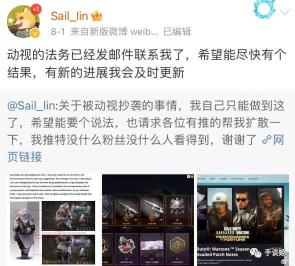 8月1日,画师表示动视的法务已经联系了他。而COD宣传页面的该角色形象也进行了相应的更改。