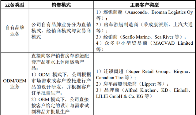 2022年6月,渡远户外申请创业板IPO获证监会受理,如果渡远户外此次上市成功,成为 “房车游艇第一股”。渡远户外在创业早期就注册了自主品牌“SEAFLO”商标,已累计注册190余项国内外产品专利。2021年的前五大客户中,只有和加拿大KD的主要业务合作模式为ODM/OEM,和其他四家的销售均以自有品牌为主。