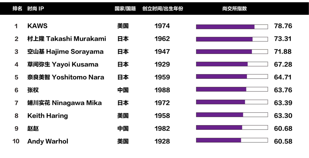 除了余文乐,刘雯,王嘉尔,其他中国设计师/艺术家们的排名总体偏低,还需要更加努力,在社交媒体影响力和商业号召力上多下功夫。
