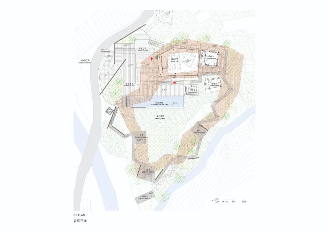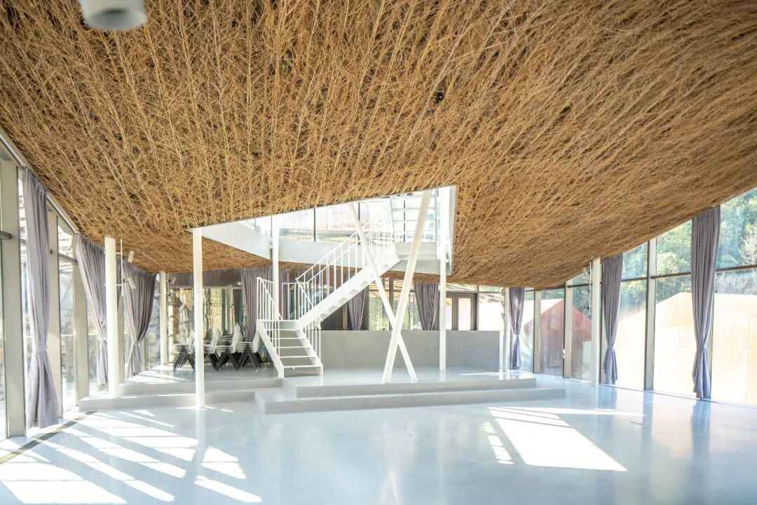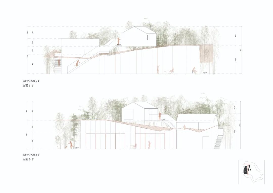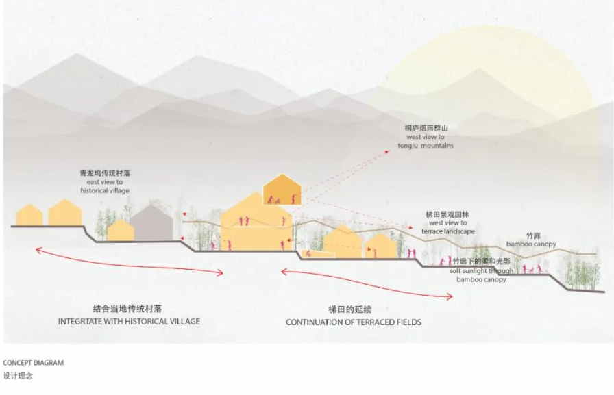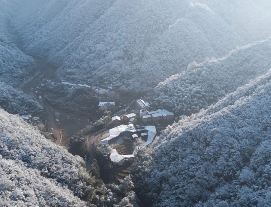 建筑设计的灵感来源于项目的基地本身,尤其是那些弥漫在整个村庄的云和雾。它们就像漂浮在空中的建筑,或者说,像漂浮的屋顶,连接着自然、建筑,以及周遭不同区域的景色。