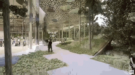 开放式的舞台将阶梯座位放置在绿植之中,整个演出环境非常轻松自然。