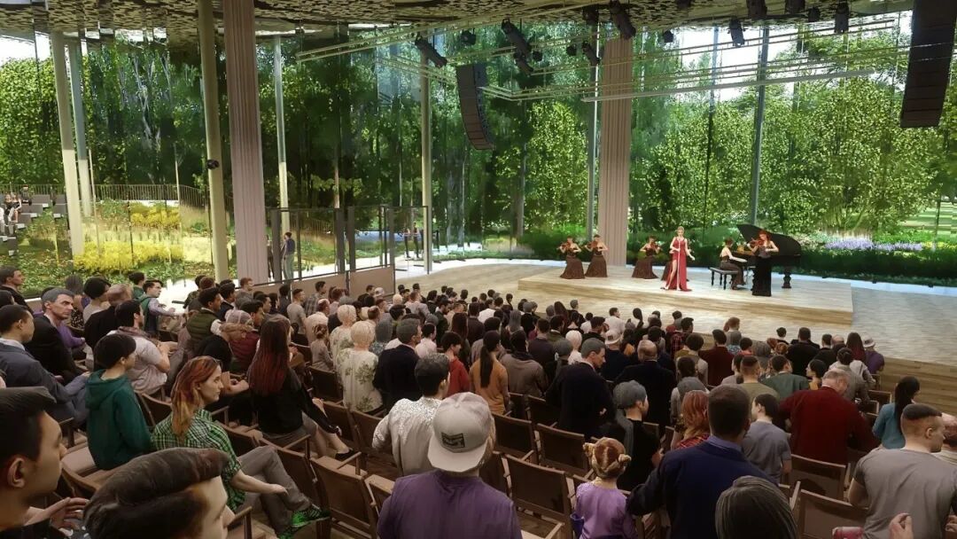 相较于传统的演出空间,这里的剧院则是在自然中,没有固定的座位。观众能够在与自然亲密接触的同时,享受音乐的美好。
