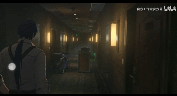 而在角色进入走廊时,游戏又开始展露出“步行模拟器”的一面。镜头开始根据角色的视线进行变化和运动,会做景深和推拉,并利用灯光来制造恐怖和诡异的氛围,在满足玩家体验沉浸感的同时,也为最后的战斗做足了情绪调动。当然,这在电影或者单主机游戏里并不算稀奇,但在商业手游里却十分少见——大部分都会选择用播片来推进剧情,而不是让玩家实操体验。