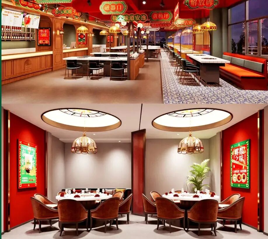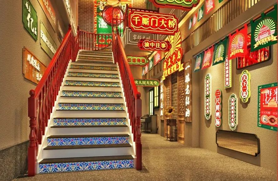 采用重庆复古吊脚楼元素进行空间对立面设计,延续民国时代都市氛围,给予消费者直观、真实的视觉体验,强调品牌个性