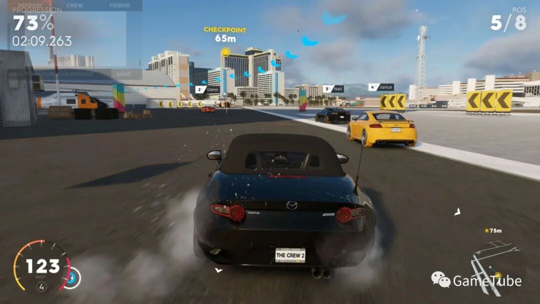 比赛过程中,会在街道的建筑和其他车辆上显示相关的必要信息,减少遮挡于屏幕上的UI展示,给玩家更宽幅的画面视野。
