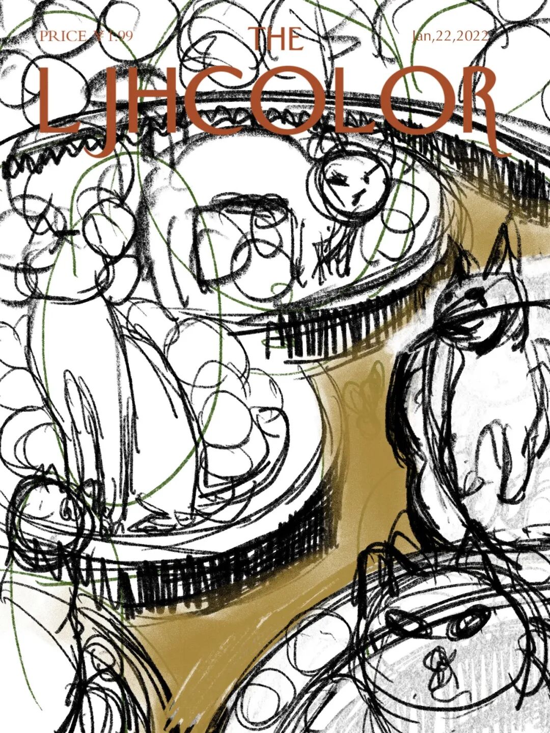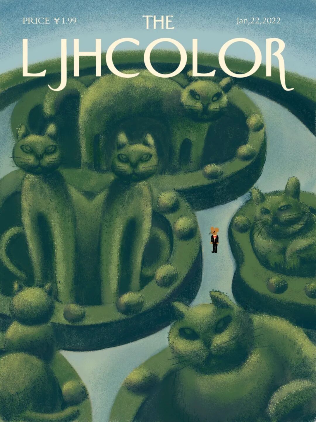 从草稿看,整体布局还可以。但是上色后,发现草垛没有啥计划性,圆球球太多,太碎,很干扰主体。开始想要一张暖色的作品,整体色系简单明了的,但效果不是特别好,后面直接改成了冷色。