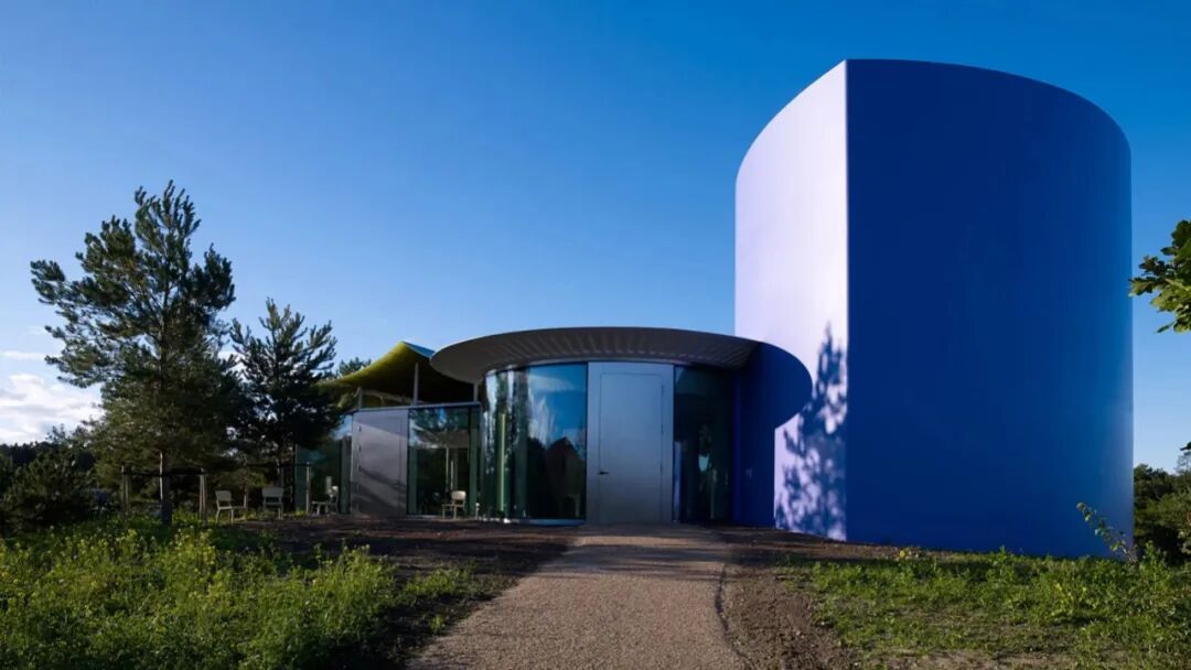 这个名为 The Triple Folly 由三个体量组成,其元素类似于纸盘、一张便条纸和一顶纸帽。通过这种方式,这座建筑有趣地引用了 Demand 职业生涯中艺术创作和拍摄的建筑模型。