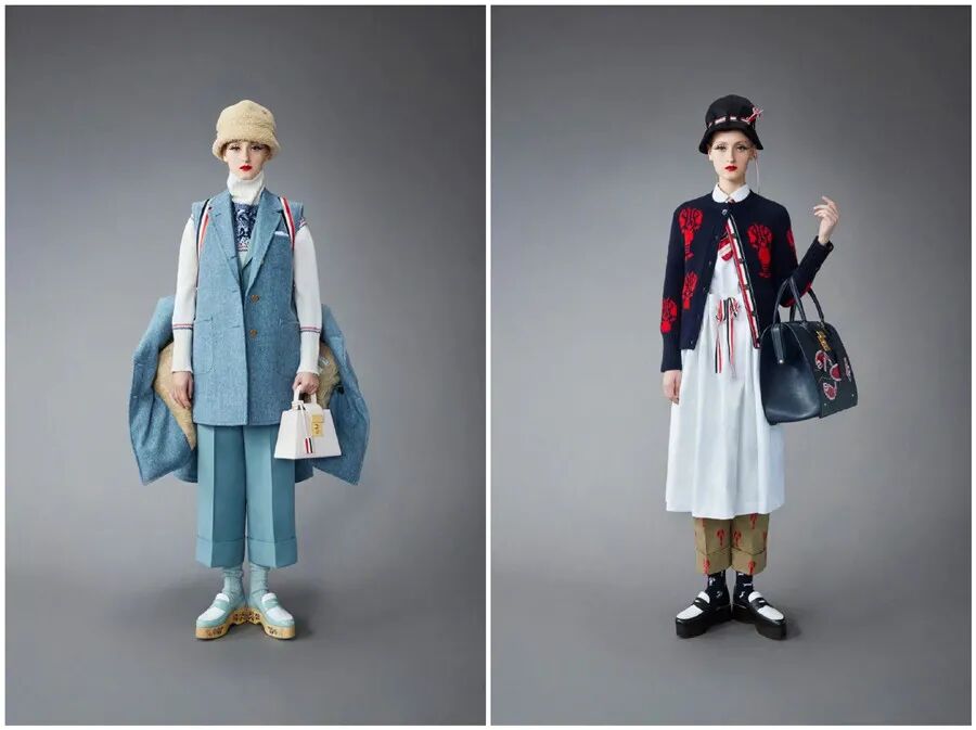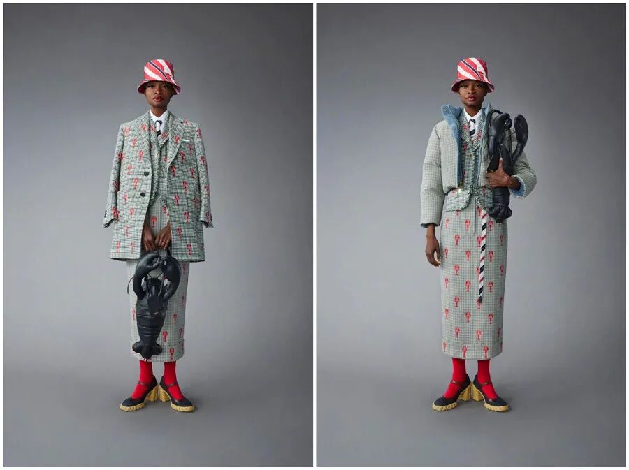 本季Thom Browne2022早秋系列值得关注的流行趋势:龙虾元素、腊肠包、百褶裙.......