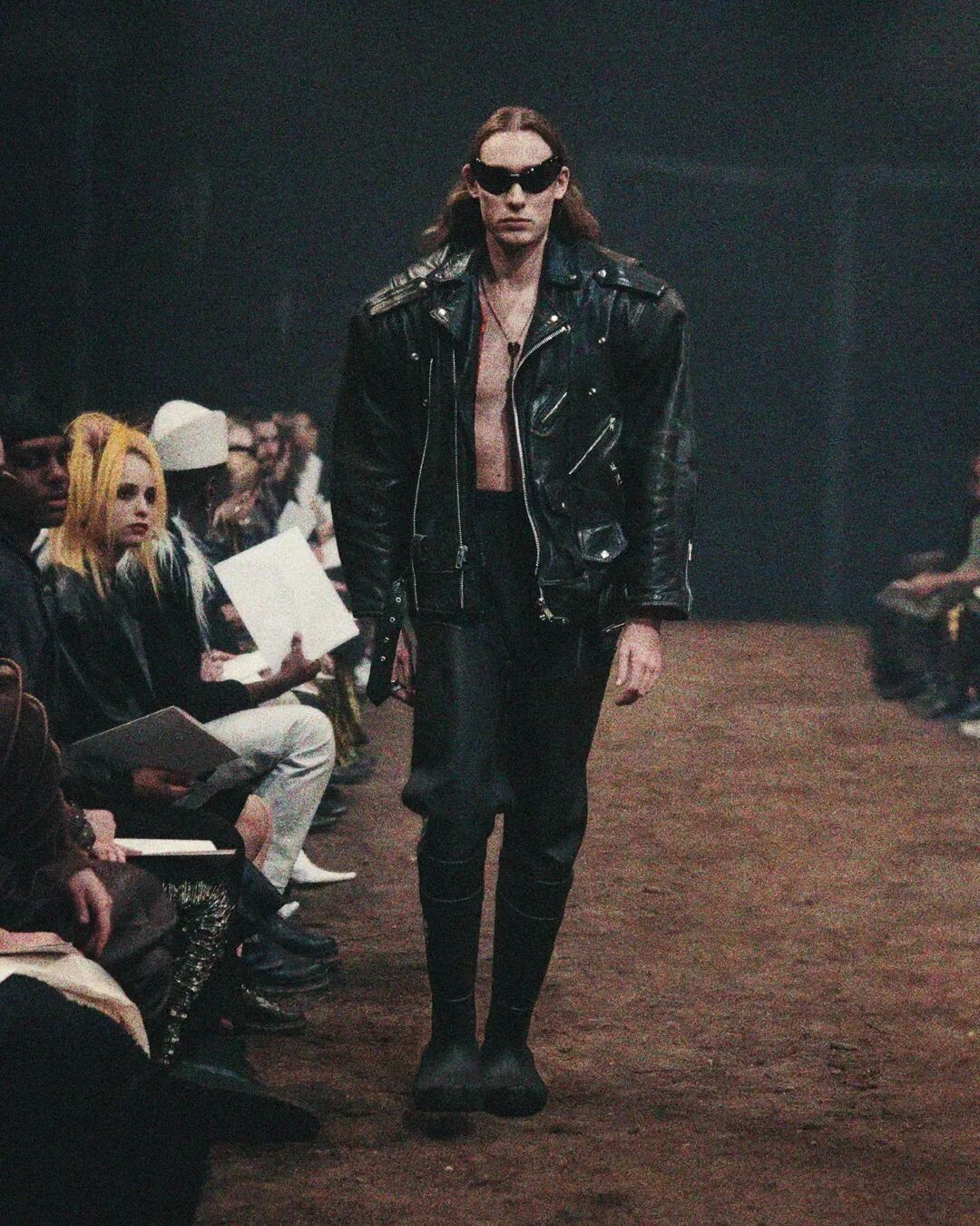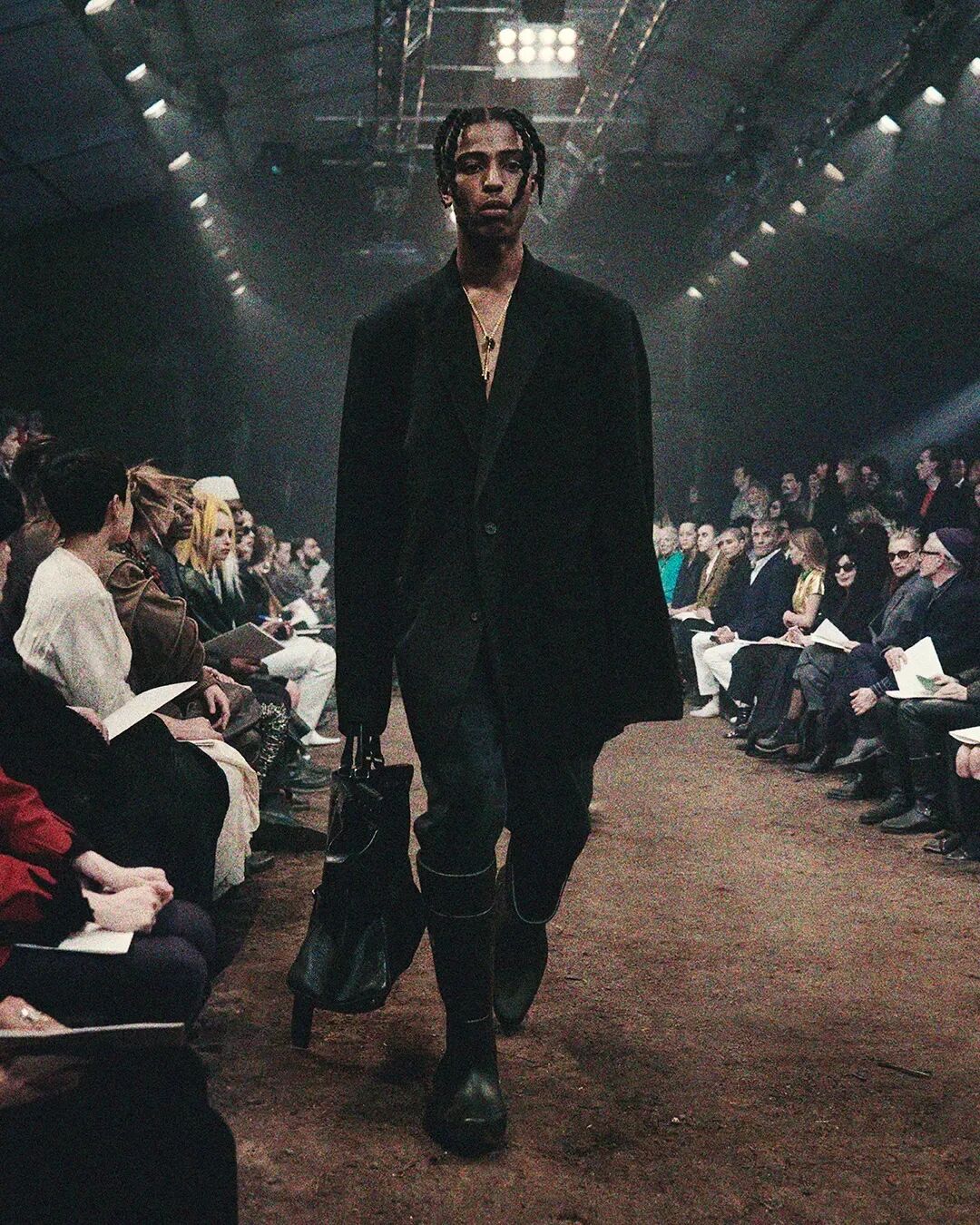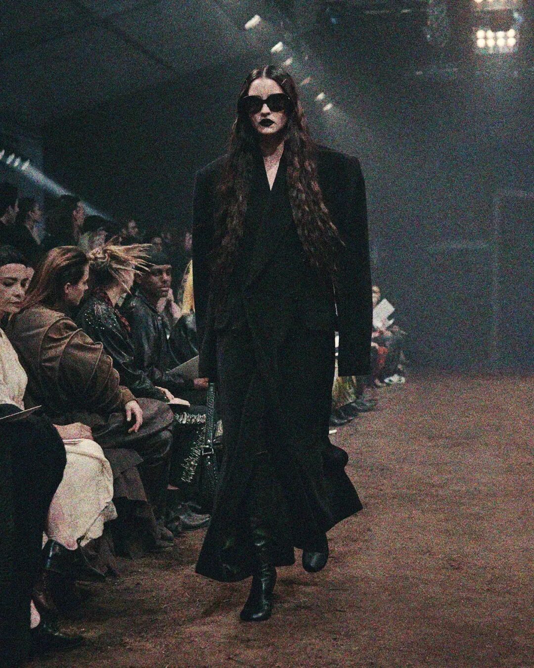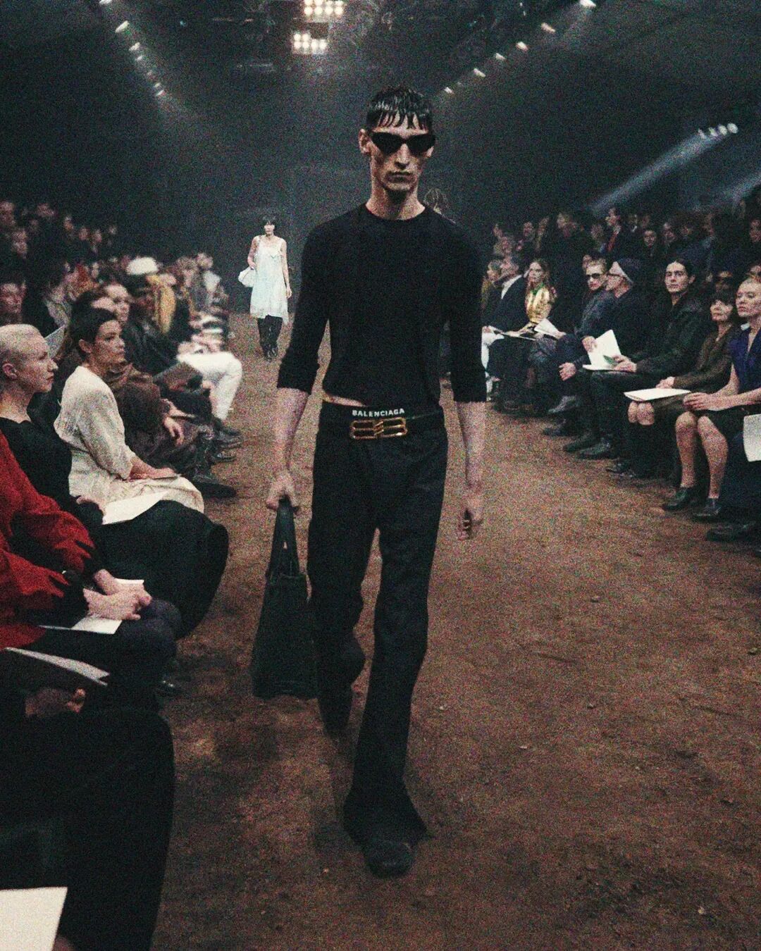 颓废与荷尔蒙之间的来回摇摆,让Balenciaga少男少女们感受到叛逆的力量。Demna还运用了大量的黑色,这些黑灵感一半来自Cristóbal Balenciaga的高级定制系列,一半来自地下俱乐部。