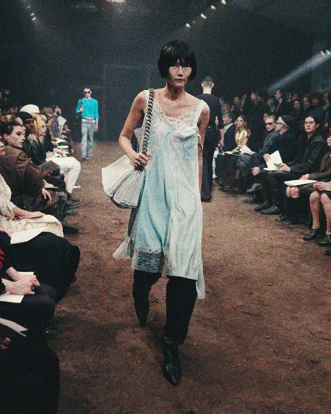 在Demna塑造的这个“前数字时代”,没有游戏,没有修图软件,没有各种社交的渠道,一切“慢”传播都显得真实且富有质感。各个不同风格的设计师,尽可能地塑造自己的品牌调性,原创的设计与百花齐放的风格用质朴的方式打动人心。