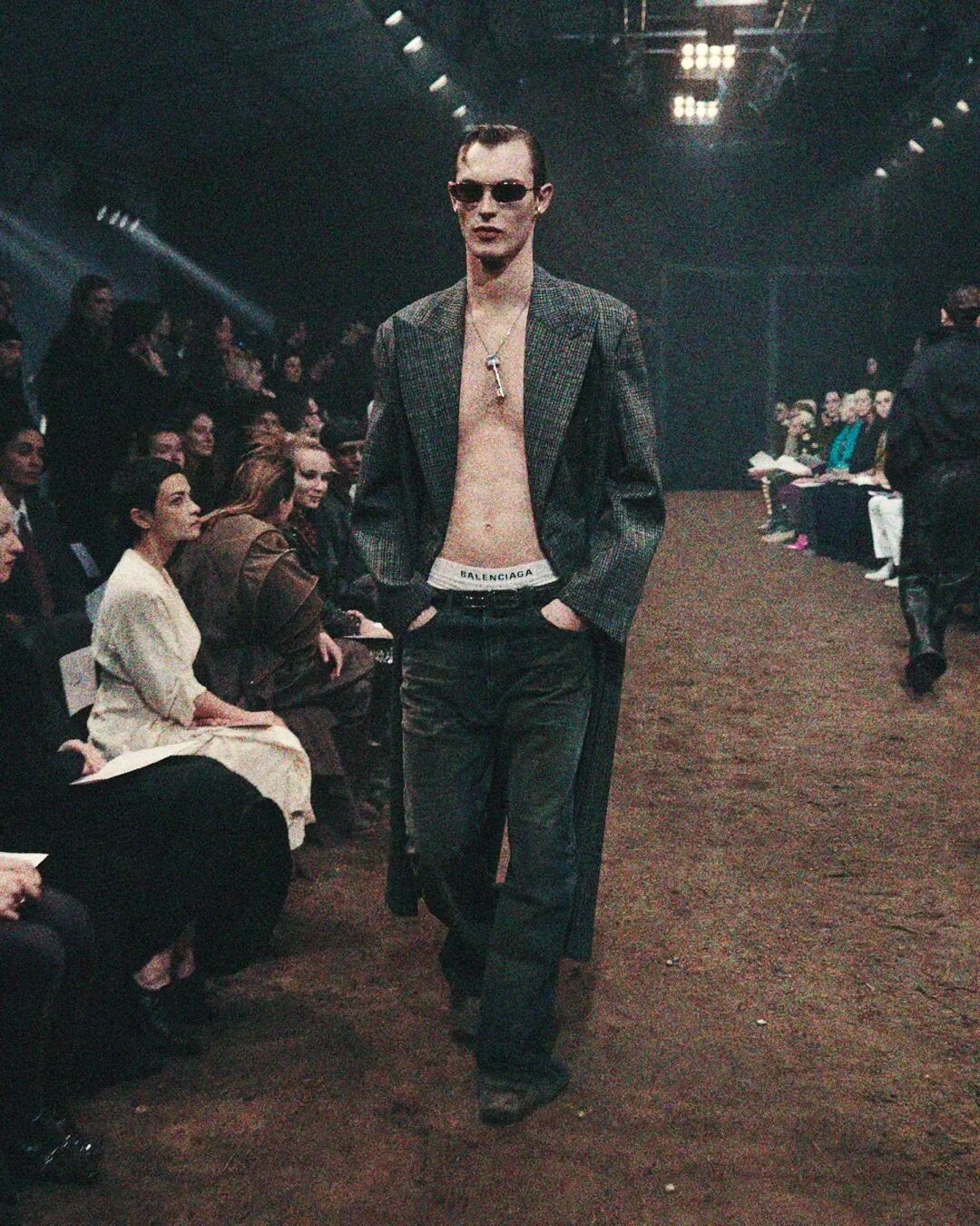 Demna Gvasalia将人们带到上世纪末的时尚变革时代,通过一场对往日时光的重现,填补Balenciaga曾经消失在时尚视野中的空白。(1968 年,设计师Cristóbal Balenciaga带着对高级成衣行业的失望,关闭了时装屋。1992年,荷兰设计师Josephus Thimister担任创意总监才重启Balenciaga。)