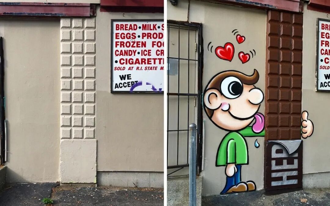 让人感到快乐,是艺术家进行艺术创作的中轴。他们用异想天开的创意,装点我们的生活,让我们感受生活的美好。法国的街头艺术家汤姆·鲍勃就是一个“人肉快乐制造机”,他用自己充满想象力的涂鸦,将无聊的街道,变成了充满勃勃生机的卡通乐园,给人们创造出愉悦感和新鲜感。
