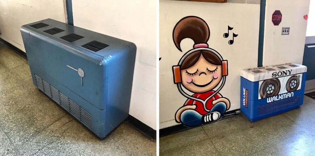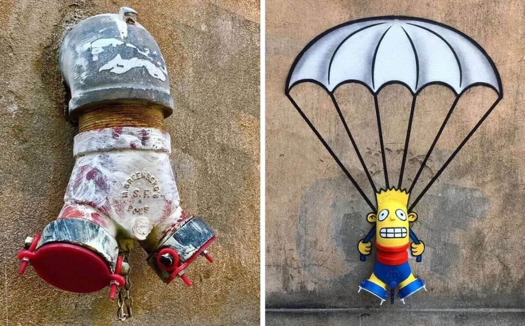 接下来,我们就一起欣赏一下这位天才街头艺术家,可爱又充满趣味的街头创作吧,你最喜欢哪一个物品的改造呢?