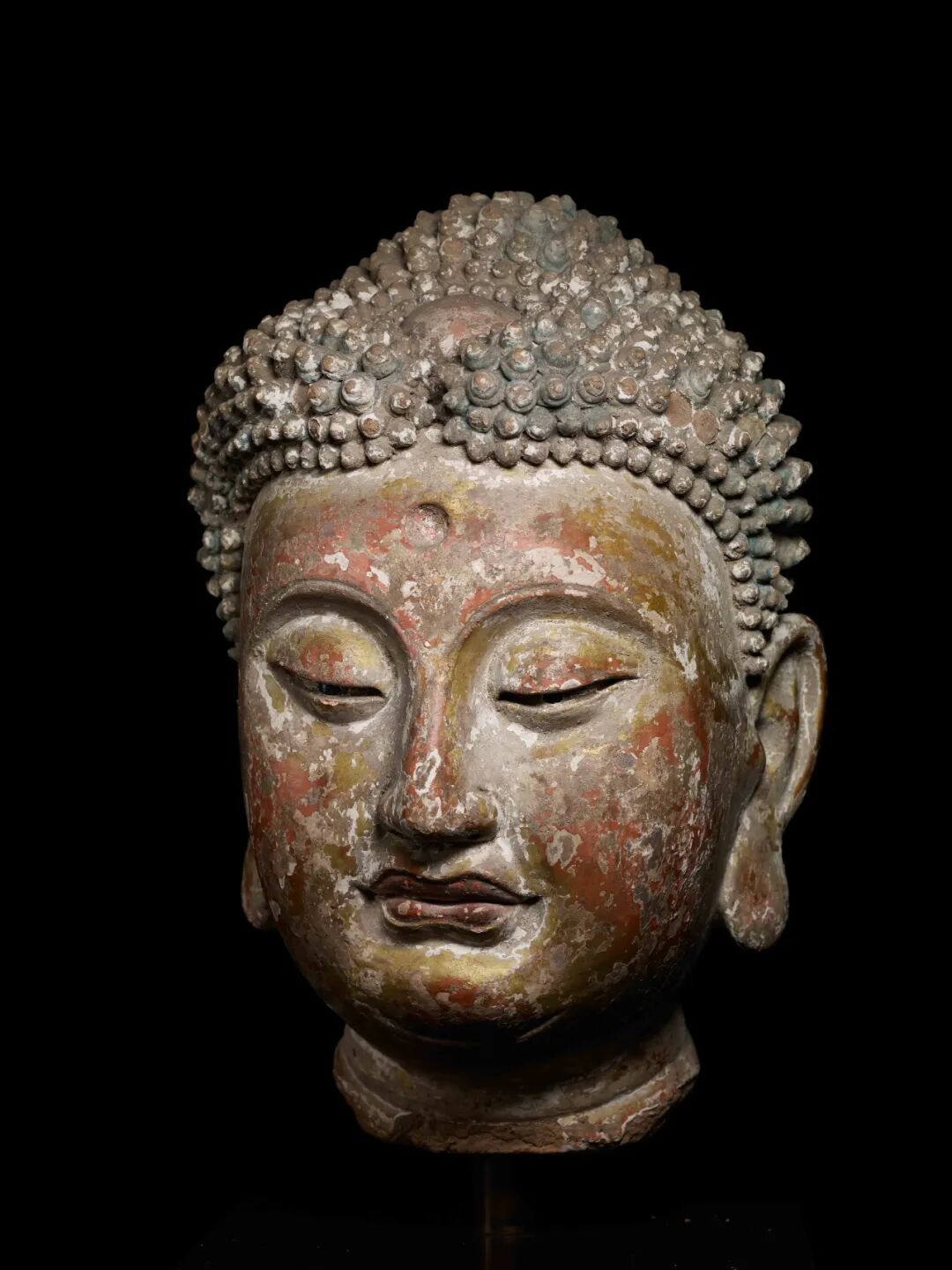 2. 辽 彩塑佛首,香港苏富比,2019/4/2,Lot 3050,高77 cm。成交价:HK$9,175,000。