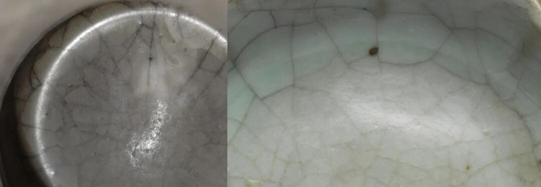 本品与故宫博物院藏「南宋 官窑青瓷弦纹樽」之冰裂纹局部比较图