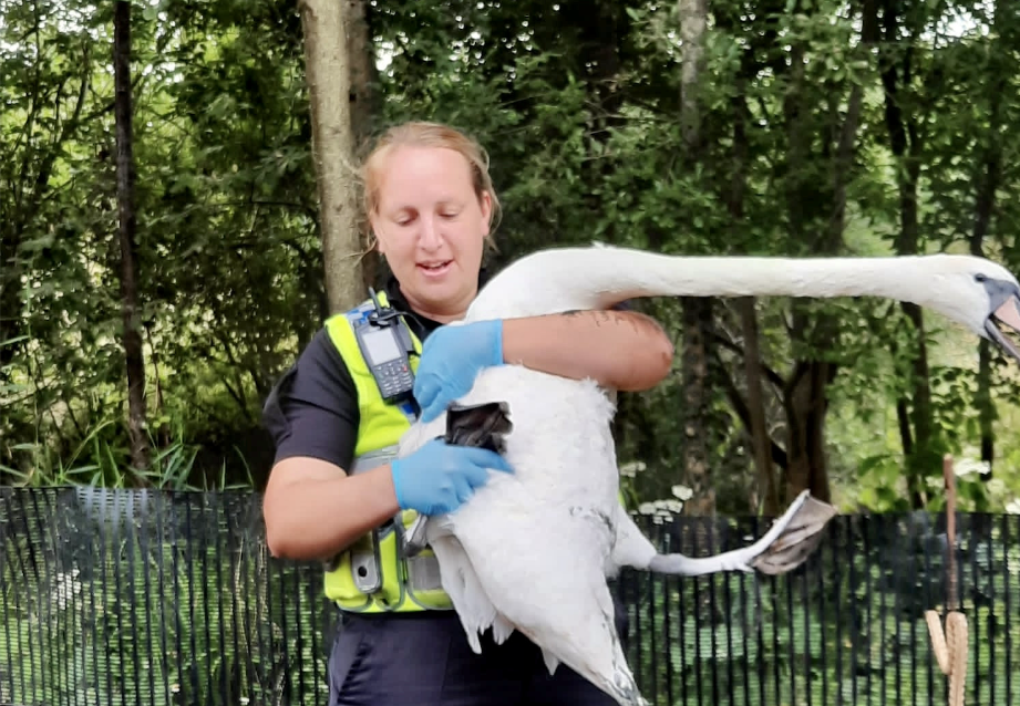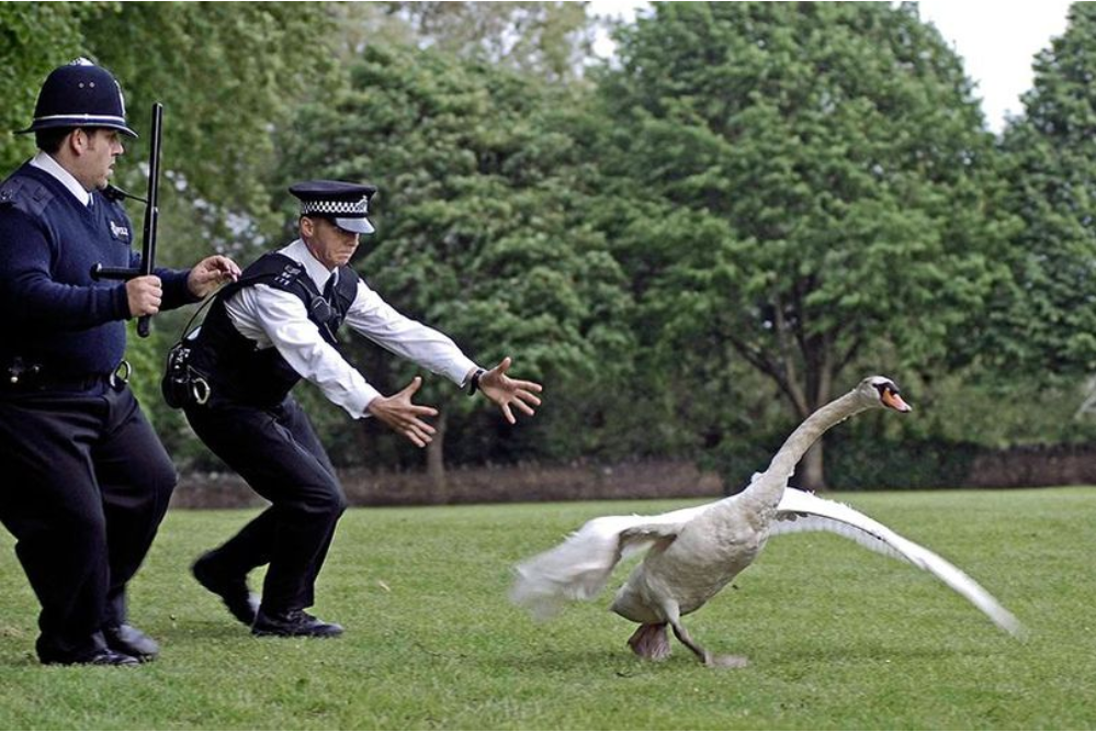 不过,情况在今年有所好转,2022年7月26日,在多年的警察因控制鸟类的失败尝试而传播开之后,英国格罗斯特郡警察局高调地宣布:“我们的警察开始接受了天鹅控制课程培训,已经可以游刃有余地处理天鹅问题了。”
