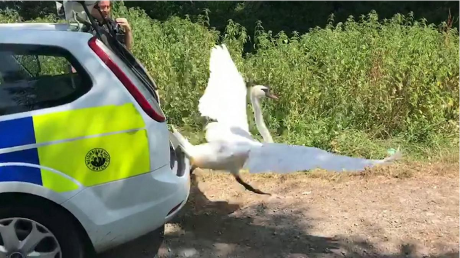 在社交媒体上经常有警察与天鹅笨拙对峙的视频图片流传,“警察打不过天鹅”也成为了英国一个特色趣梗。
