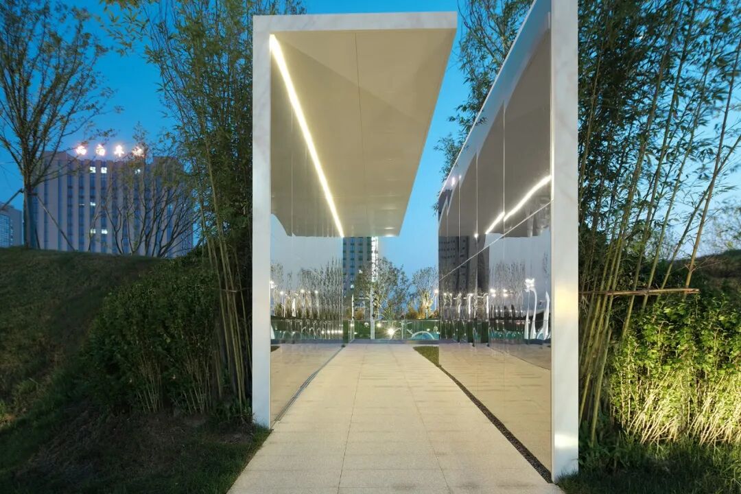 向上塑造地形,向下拓展空间,在内部形成安静的景观场域。对外,整体地形犹如被雕琢过的艺术品。对内,围合出丰富的竖向空间。