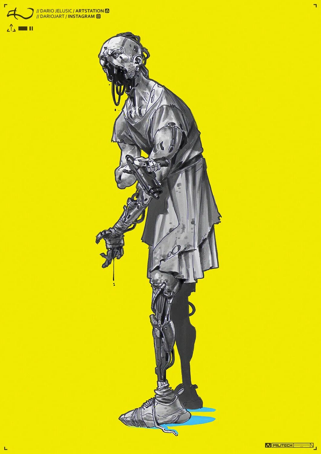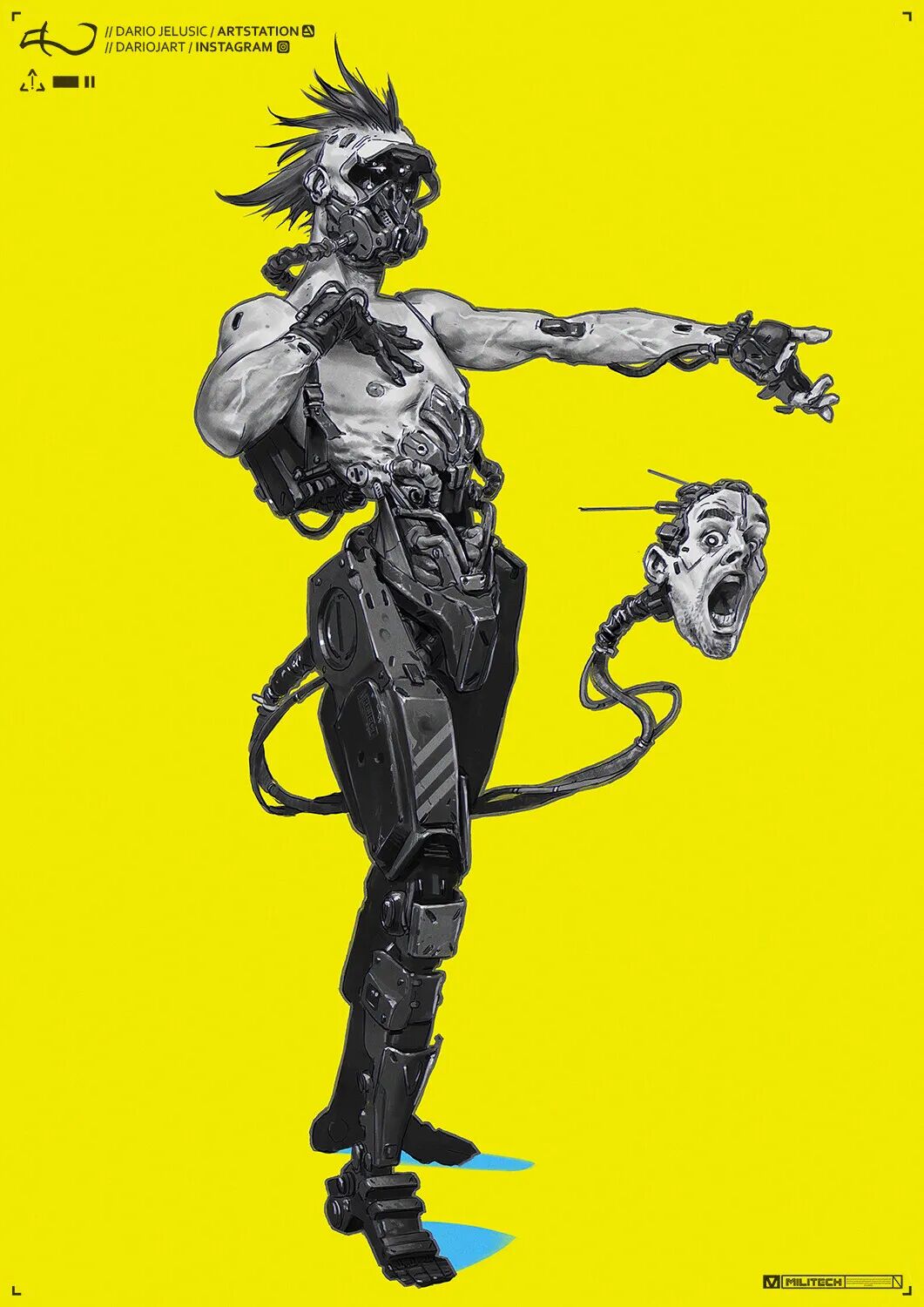 Dario还曾以《赛博朋克2077》以及同类型游戏为灵感来源创作了一系列角色,在7天之内完成了7幅作品,整体看起来相当富有表现力,设计感很强。