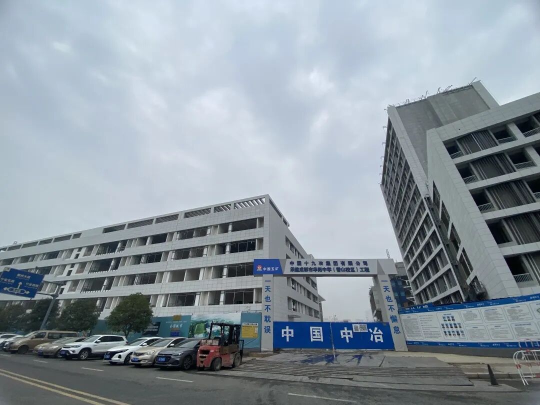 从现状看,学校项目主体结构已经完成,目前正在开展内外装饰和景观绿化施工。