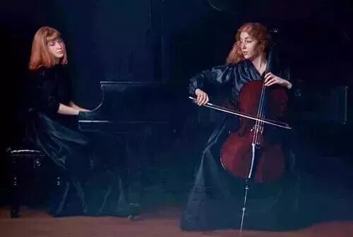 《预言者》中女子和服的质感,看在眼里竟然恍惚生出触感,宽袖上的折痕,绸缎上的织图,还有她的皮肤、神态,怎么可能如此逼真?音乐家系列更是,大片的黑色,画面简洁空灵、人物典雅高贵,那些光影,乐器和琴凳上的岁月感,女子的手,演出服的质感和光泽,黑色背景上清晰的黑色发丝……简直不可思议。
