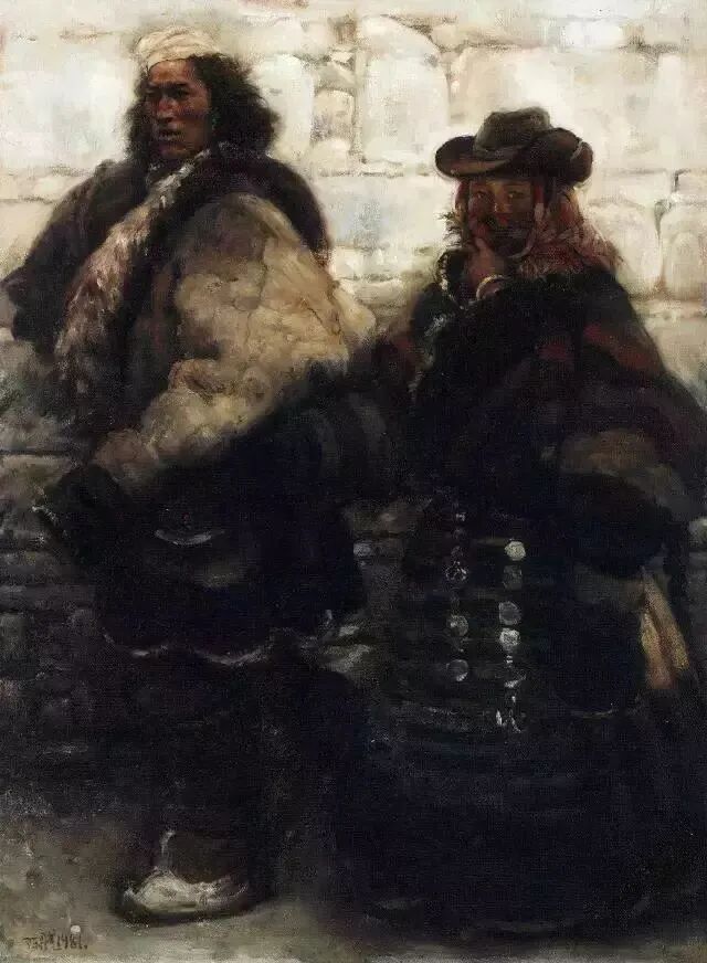 西藏组画 进城之二 陈丹青谈未发表过的三幅《西藏组画》 1980年我毕业留校,翌年取出在拉萨期间早已画出的部分素描草图,继续创作——我当年最为迷恋的印象,便是藏人进城互拽衣袖以防走失的淳朴相:《进城之一》,画得是三位彼此牵衣行走的女孩;《进城之二》,画得是怀抱乳儿的妻子拽着丈夫的长袖,也即后来被发表最多的那幅。这幅《进城之三》,是根据许多草图中夫妻进城的不同变体画之一,作成油画的。图中夫妻的行走方向及装束,与上一幅相异。