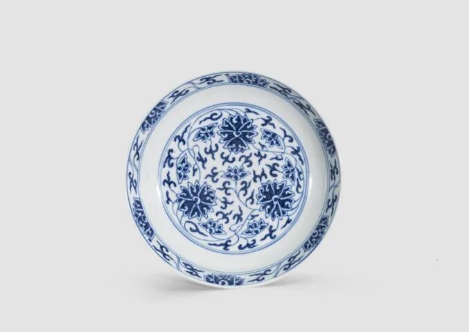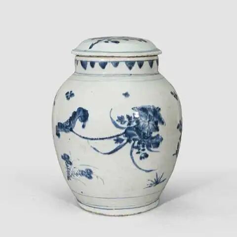 【说明】:直口,口无釉,溜肩,长圆形腰鼓腹,圈足。此罐以其形状似莲子而得名“莲子罐”。明代崇祯年生产的青花细瓷具有胎薄、釉清、色艳、层次分明、画工细腻的特点。