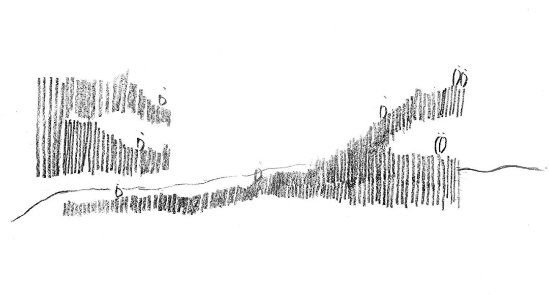 “筝者,上圆似天,下平似地,中空而准六和,弦柱十二,拟十二个月,乃人智之器也。” 古筝是我国古老的拨弹乐器之一,形成流传于秦地,盛行于隋唐。而《高山流水》作为中国十大古曲之一,凝结了中国古文化与古乐之精华。本设计以这一古曲为基础,将不同的演奏技巧与发音方式转化为建筑语汇,并提取山与水的意向,结合卡塞尔与秦皇岛两个场地的不同文化背景与场地特点营造出两个冥想与回望的场所。