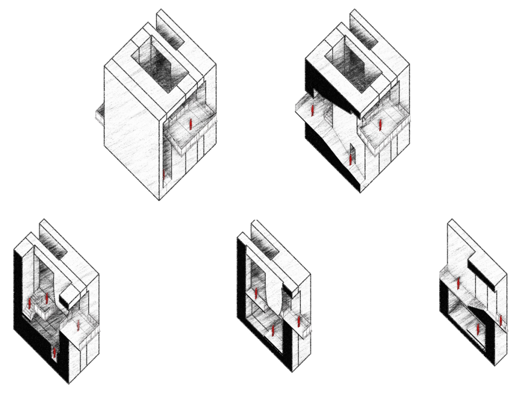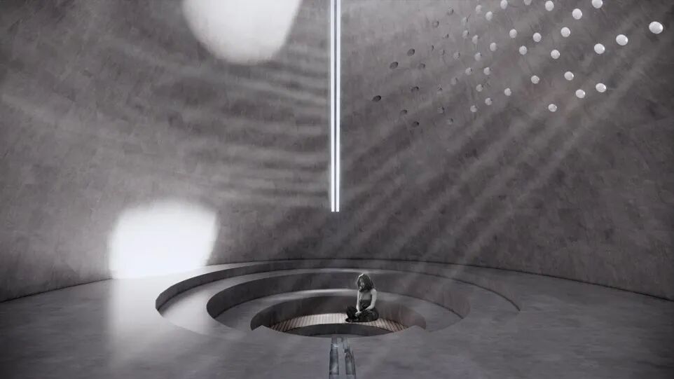 通过对古琴的系统性分析从中汲取原型,从而设计一组供一人独自冥想的时光容器,旨在通过对外界的短暂隔离,让人们从世事繁杂中暂时抽离,沉浸在与光、与时间、与自然的对话中。两个方案基于两块场地的要素进行设计,正负形的图底关系转化将相隔万里的两座建筑建立起了联系,将光这一共同的灵魂进行不同方式的诠释。