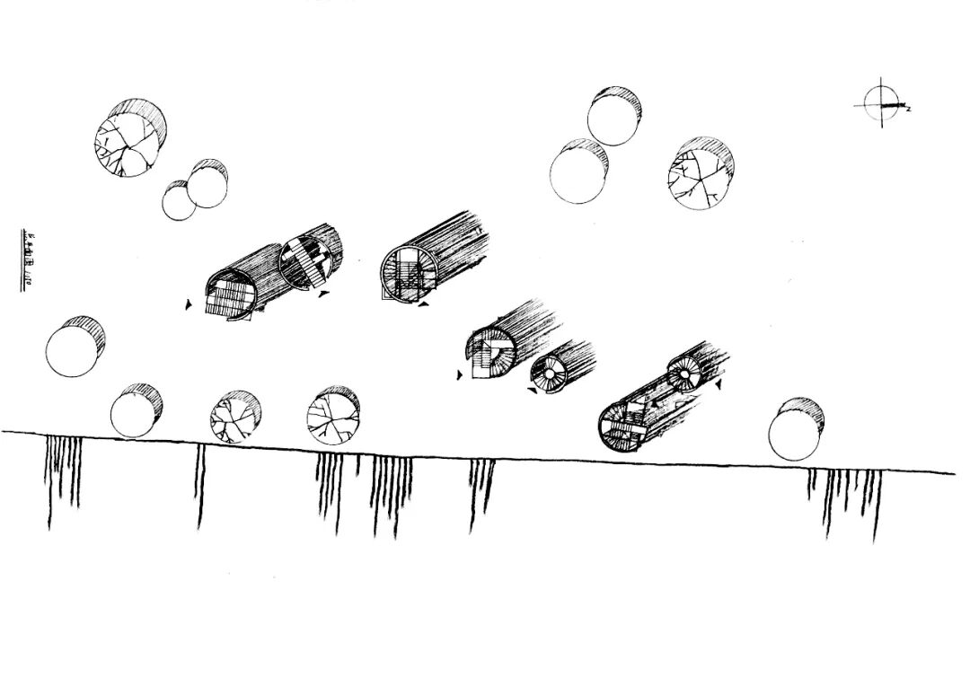 Drawing prototypes from the systematicanalysis of the guqin, to design a set of time containers for one person tomeditate alone, aiming to temporarily isolate people from the clutter of theworld and immerse themselves in dialogue with light, time and nature through abrief isolation from the outside world . The two buildings are designed basedon the elements of the two sites, and the two buildings separated by thousandsof miles are connected through the transformation of the positive and negativemap-base relationship, and the common soul of light is interpreted in differentways.