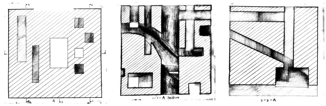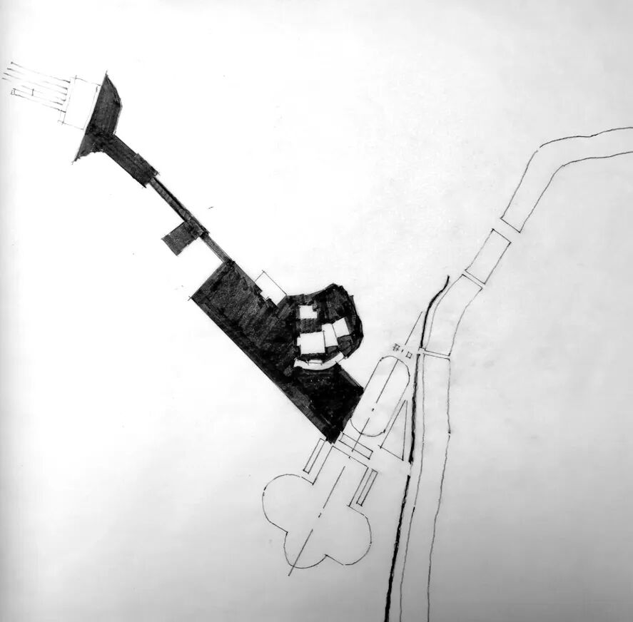 琵琶是著名的中国传统乐器,本次设计课题从琵琶的构造开始,对琵琶的平面剖面、部件结构进行了深度的了解,研究琵琶的发声原理,并梳理总结其中的规律。然后将这种规律图像化,再通过浇筑、剖切、提取图像等建筑化的研究方法,获得独特的原创的原型符号和建筑语言。然后结合场地分析进一步推敲出建筑方案。这是一种具有普适性的研究方法,它并不是一种直接的化用,而是在客观规律的基础上进行创作性发散的设计方法。