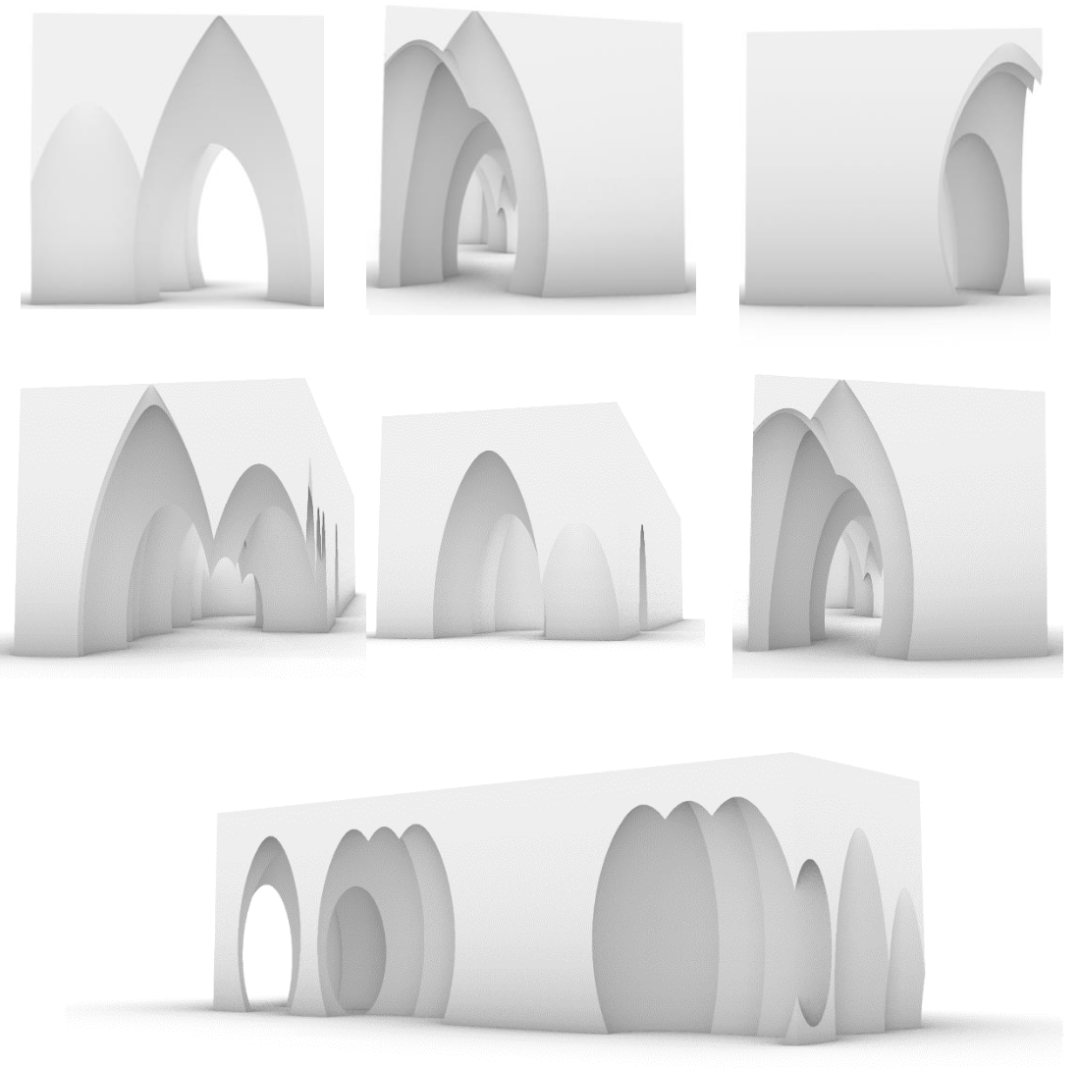 From many original cultural and public museumplaces in the site of Kassel, important elements such as arcades and archesderived from classical architecture are extracted, which is also extracted fromthe previous stage of translation of the music and mechanism of instrument andarchitectural vocabulary establishment. In this program, a sound art museum isdesigned to abstract and deform the traditional arches and arcades, and seekthe connection between space and function on this basis. Three different spaceswere created: the ground floor arcade space defined by the axis of the citymuseum;, Many concave spherical arch spaces are formed inside, which makes thesound generated in the space full of changes; The umbrella-shaped arch spaceconnecting the upper and lower layers in series, the tall convex space formedby it makes the sound easy to concentrate, the atmosphere is solemn, andprovides a meditation space for stopping and meditating.