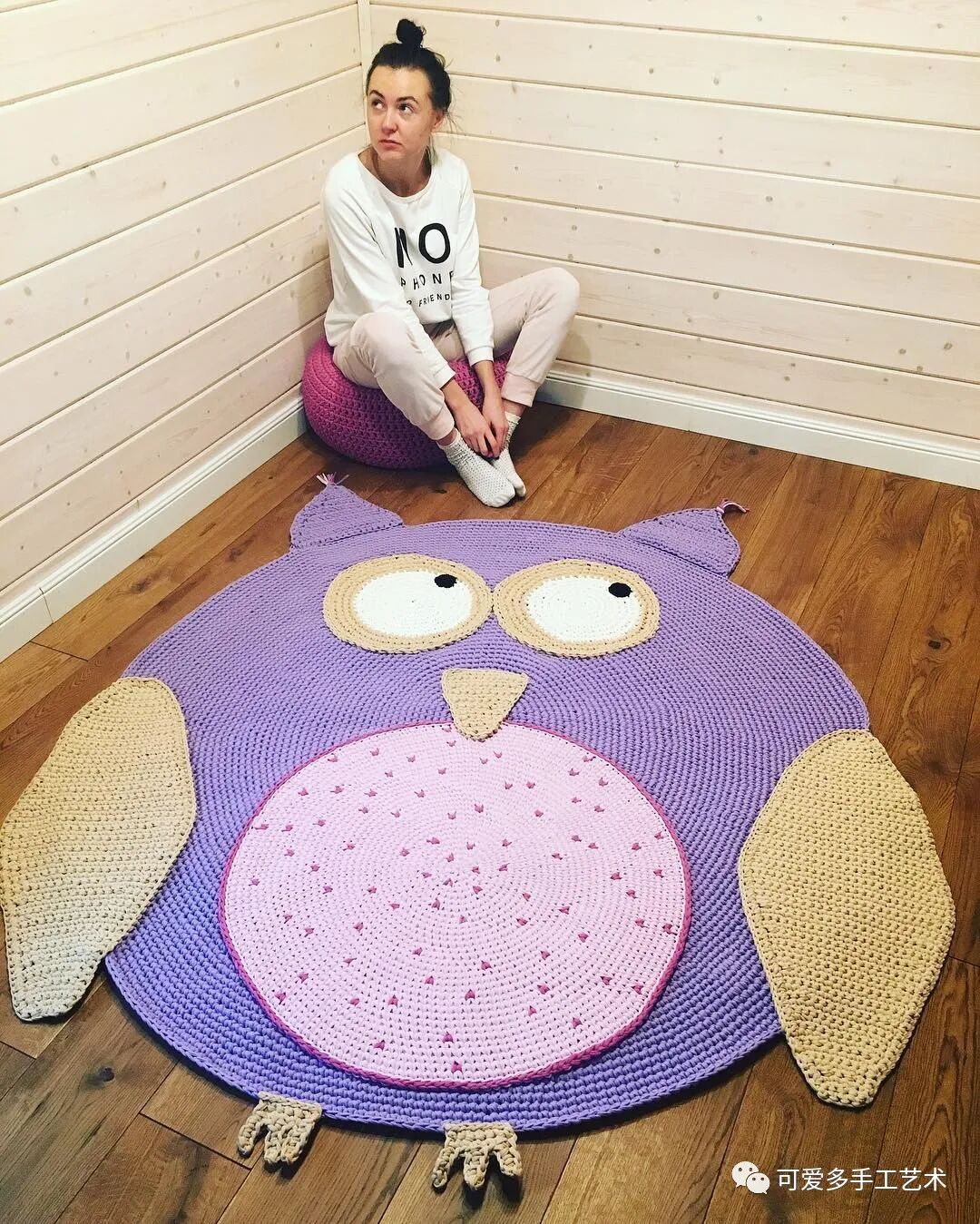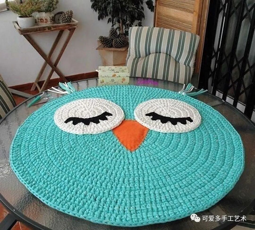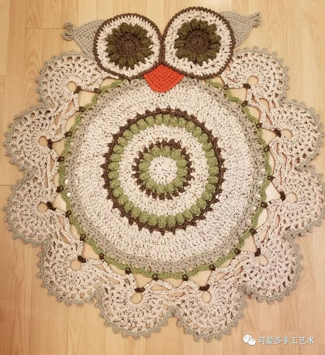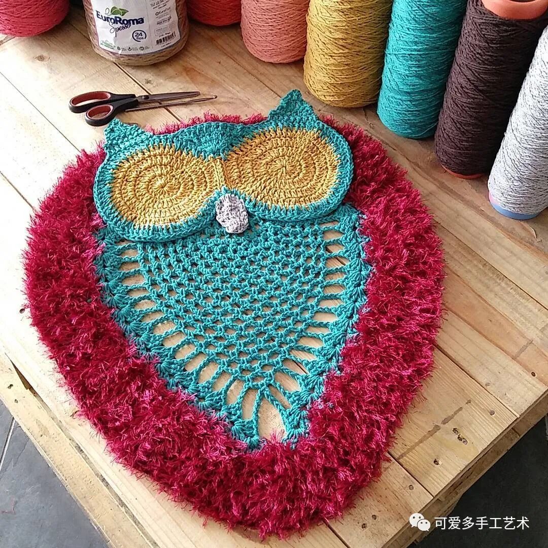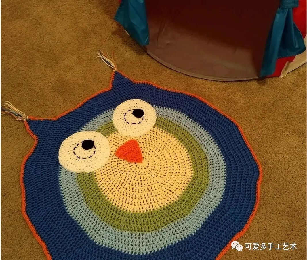 天冷时,地板都觉凉,钩几张大大的地垫放地板上可以随时活动,既华丽又温暖,放在哪个位置都适合,钩小一点还能做餐垫坐垫甚至做成装饰花片缝在包包或衣服上。超可爱的猫头鹰图案,各种百变的造型,自己动手钩几张,全家都享受。