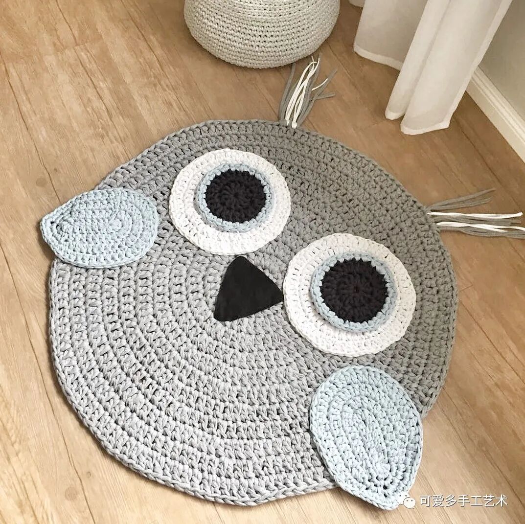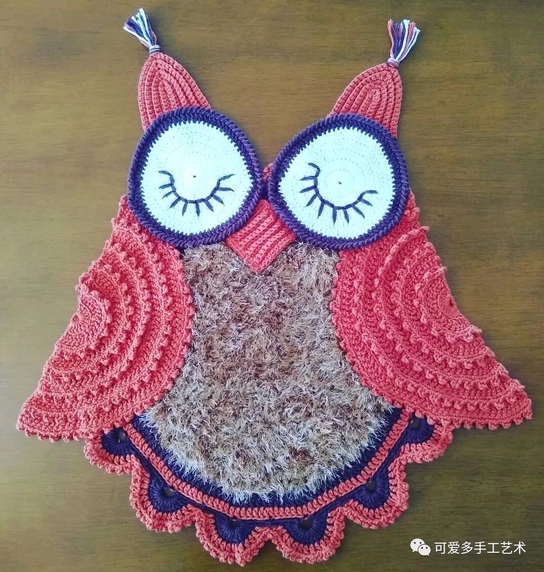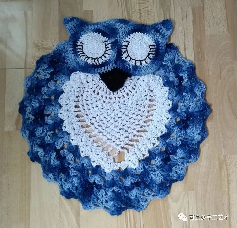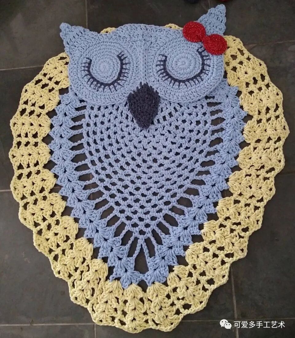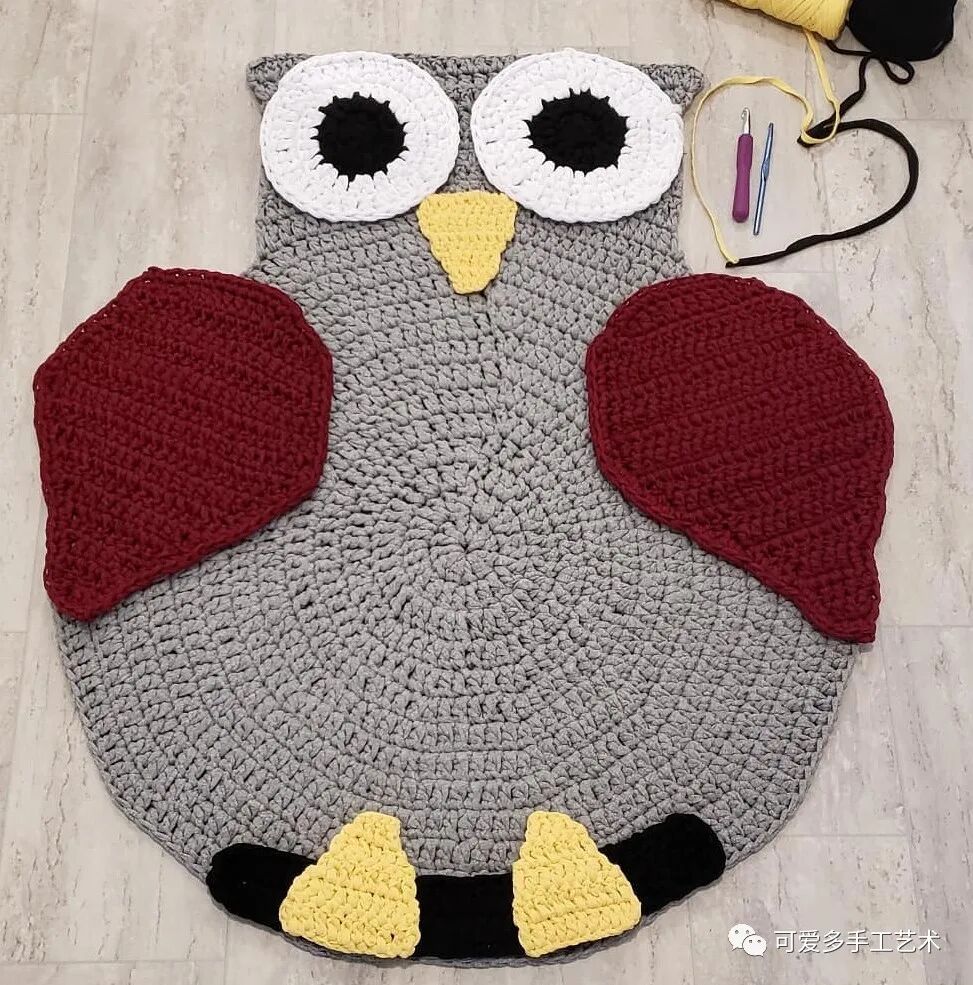 天冷时,地板都觉凉,钩几张大大的地垫放地板上可以随时活动,既华丽又温暖,放在哪个位置都适合,钩小一点还能做餐垫坐垫甚至做成装饰花片缝在包包或衣服上。超可爱的猫头鹰图案,各种百变的造型,自己动手钩几张,全家都享受。