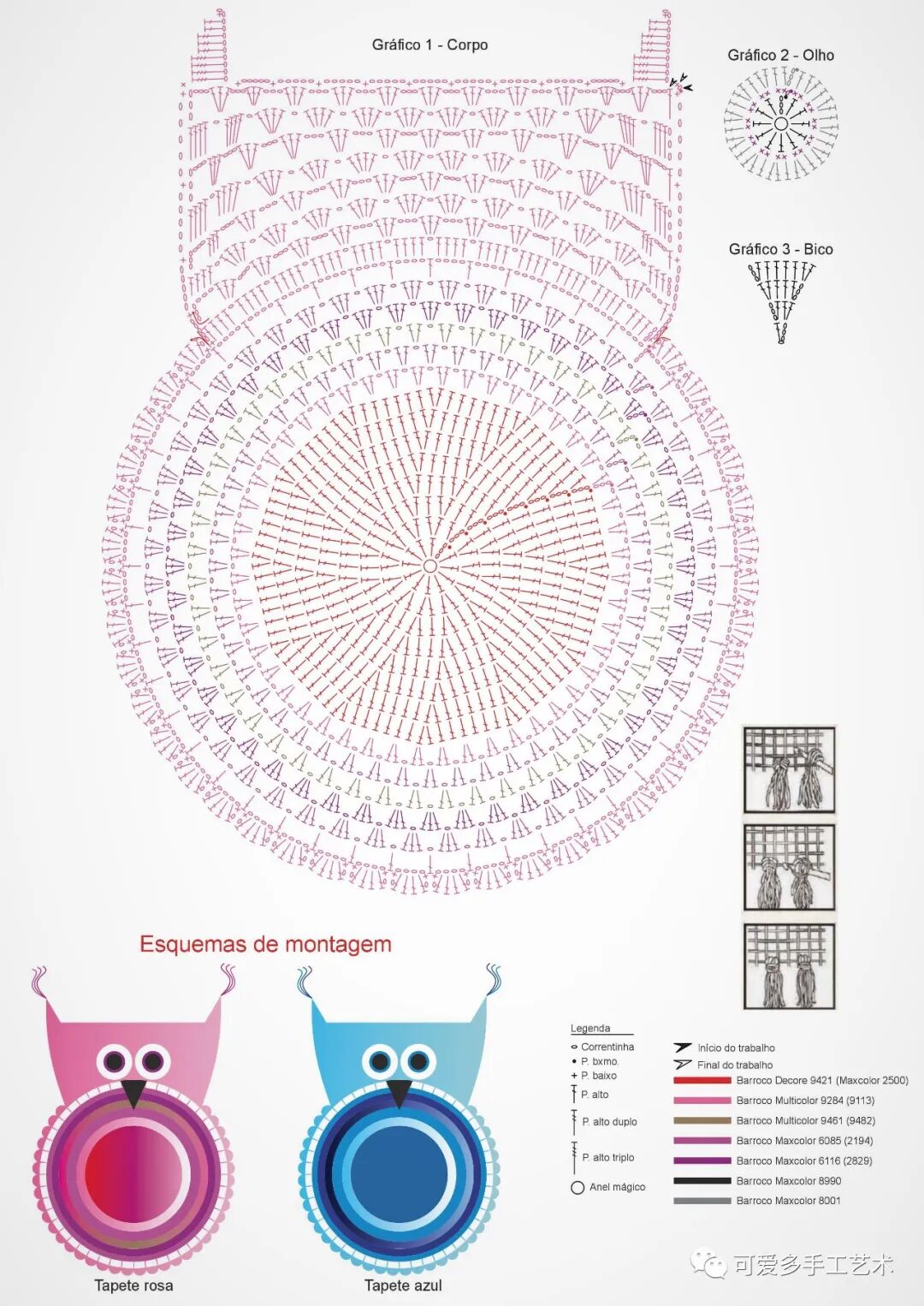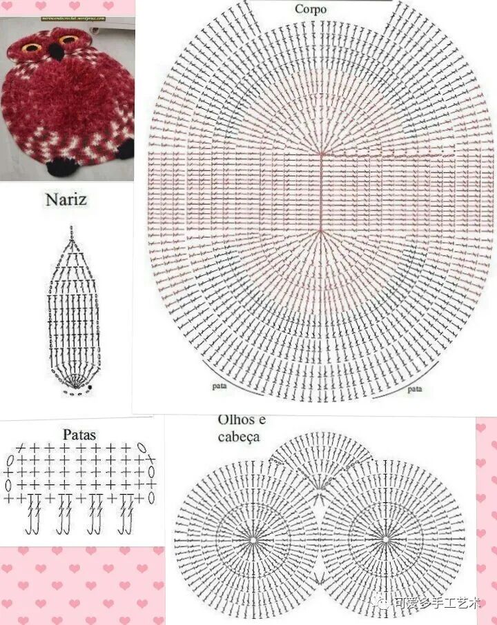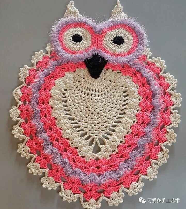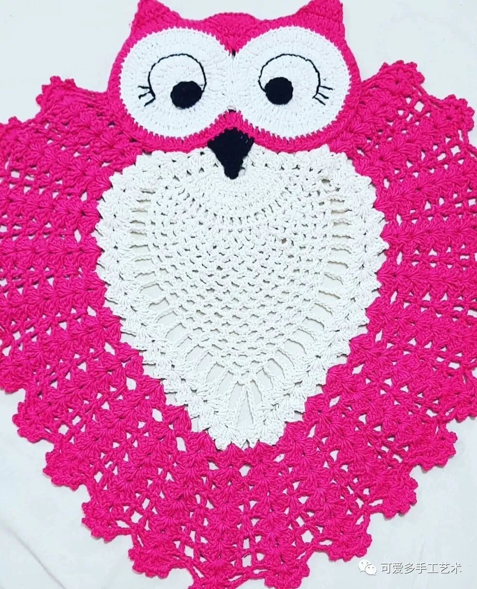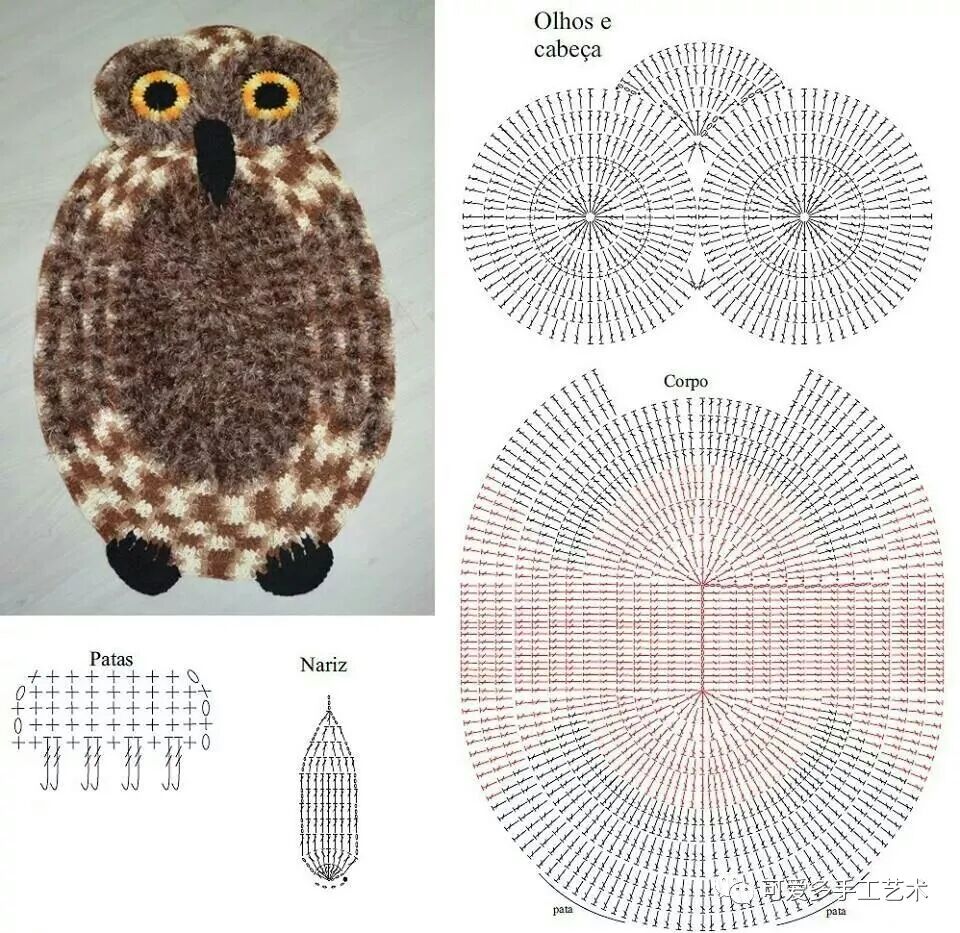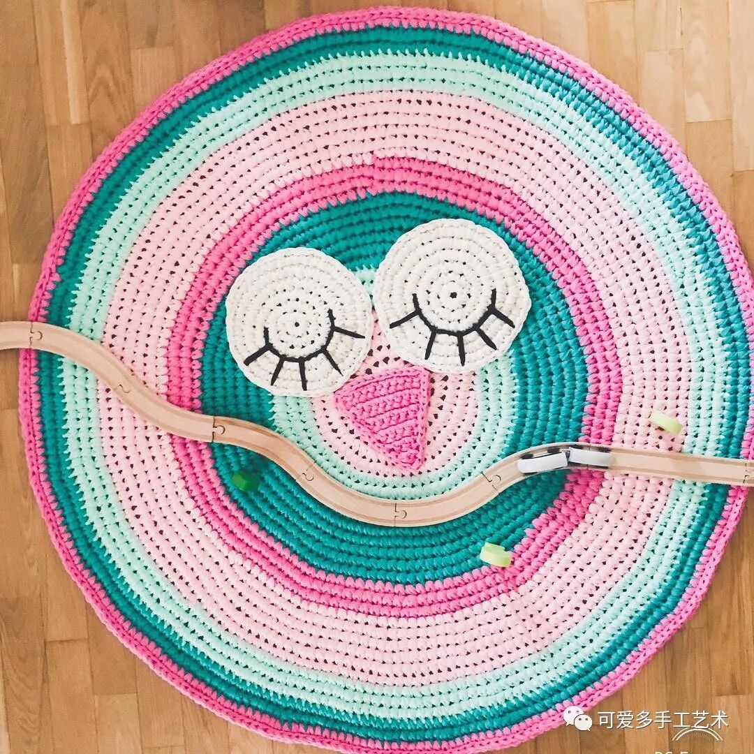 天冷时,地板都觉凉,钩几张大大的地垫放地板上可以随时活动,既华丽又温暖,放在哪个位置都适合,钩小一点还能做餐垫坐垫甚至做成装饰花片缝在包包或衣服上。超可爱的猫头鹰图案,各种百变的造型,自己动手钩几张,全家都享受。