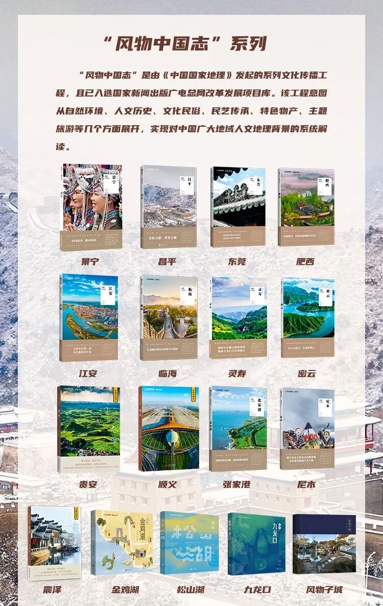 “风物中国志”系列是由《中国国家地理》发起的系列文化传播工程,且已入选国家新闻出版广电总局改革发展项目库该工程意图从自然环境、人文历史、文化民俗、民艺传承、特色物产、主题旅游等几个方面展开,实现对中国广大地域人文地理背景的系统解读。