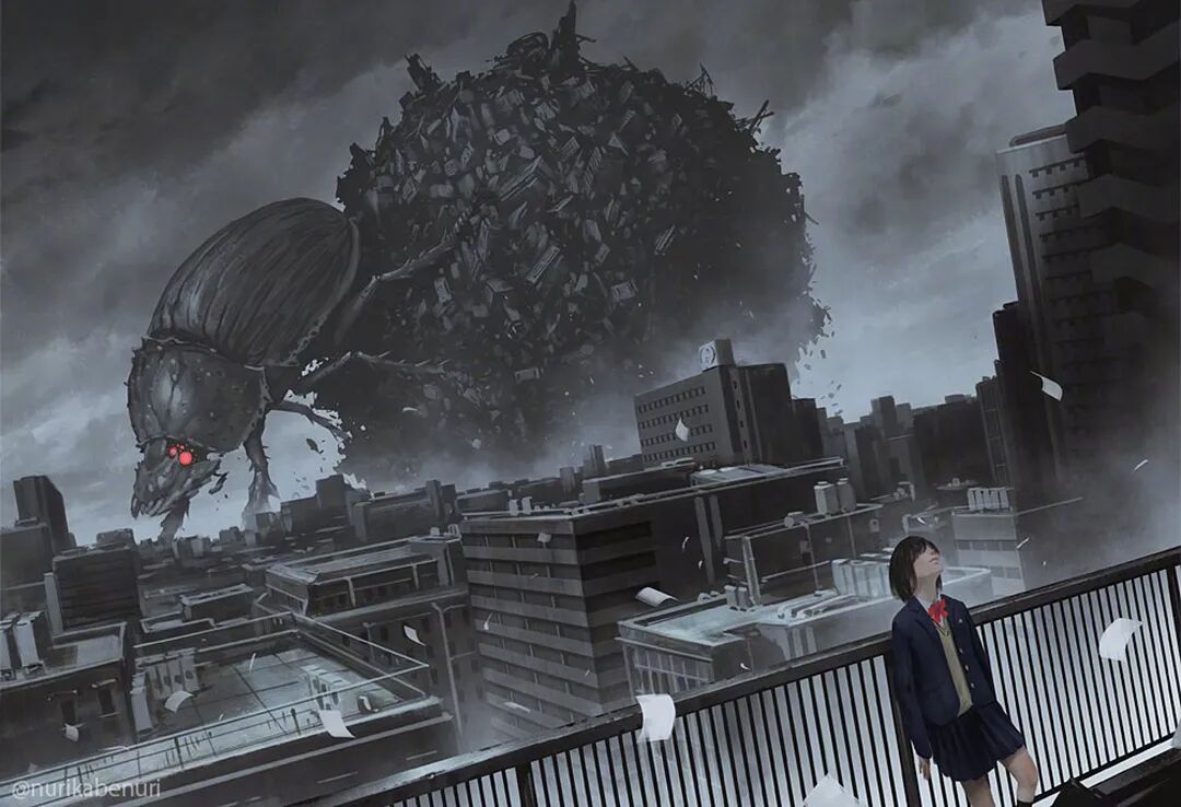 插画师塗壁笔下的这一组奇幻世界插画,真的好壮观,看着有山海经那味了,给人一种巨大的压迫感。整个画面的构图设计极为恢弘震撼,这充满想象力的画风,生动有趣,栩栩如生!