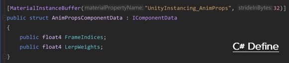 为了在C#中更改材质的Instance属性,我们定义一个和Instance属性完全匹配的IComponentData Struct,在数据对齐方面,我们遵循std140内存数据对齐原则。如下图所示