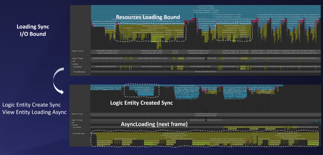 在进行了Job并行性优化之后,我们发现在大地图上拖动时存在由于Entity资源同步加载导致的一些耗时峰刺,这对玩家来说是体验上的损失。